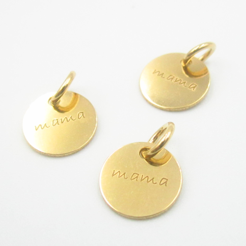 Element ozdobny, blaszka z wygrawerowanym napisem mama. Srebro próba 925, złocone 24K.