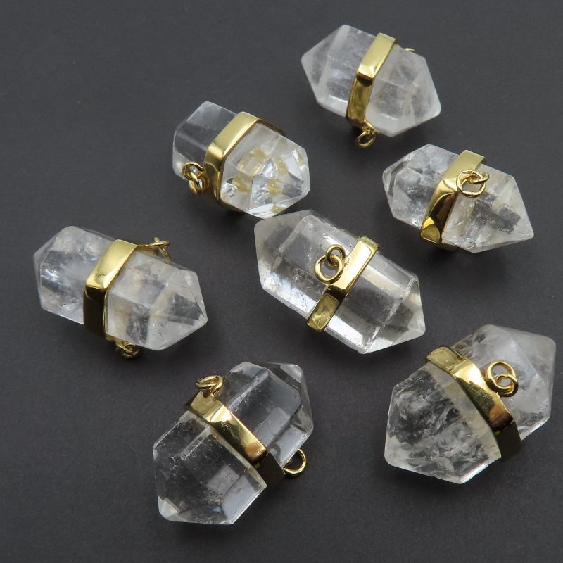 Zawieszka sopel z naturalnym Kryształem Górskim. Srebro złocone 24K próba 925.
