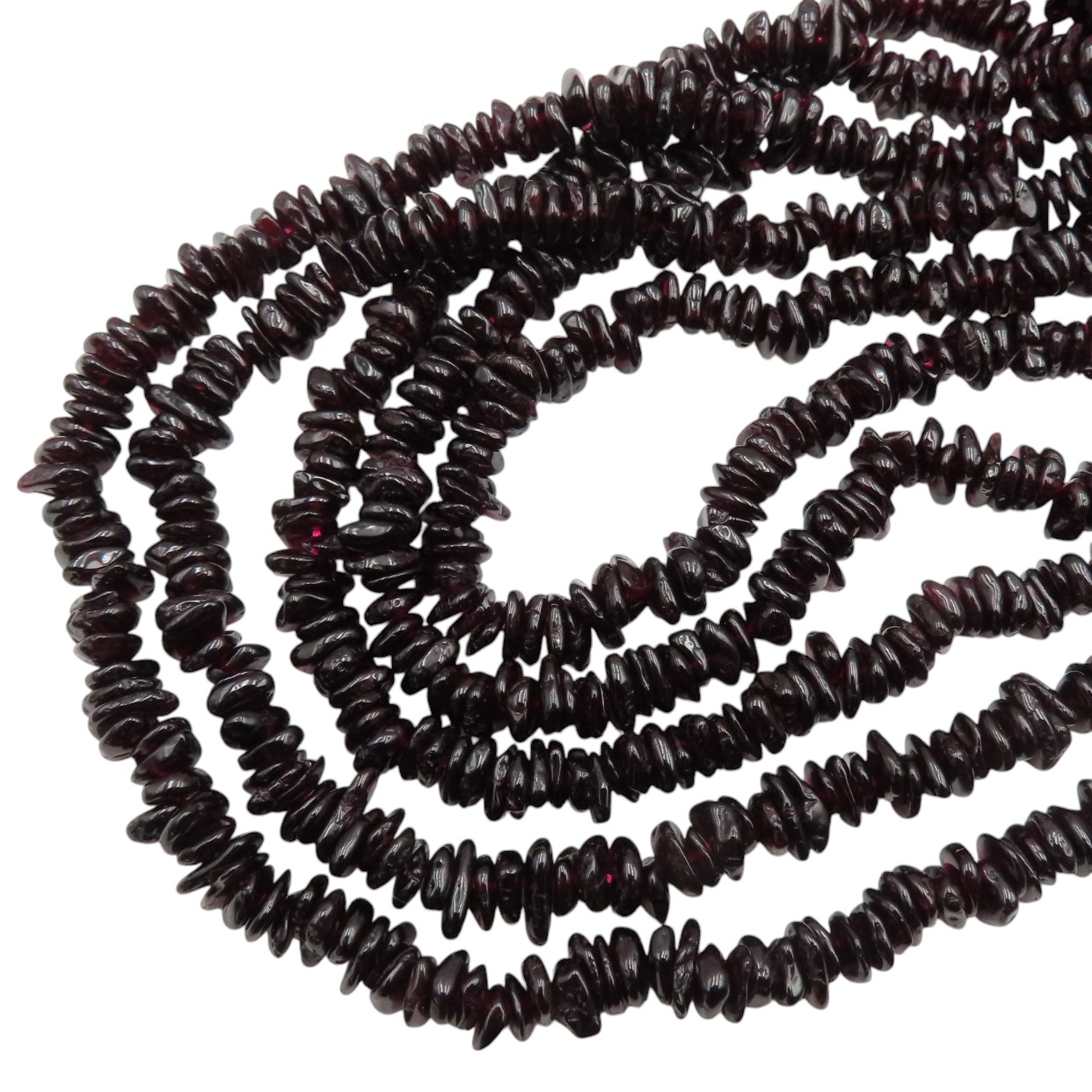 Naturalny granat w formie nieregularnych pastylek zachwyca głębokim, eleganckim charakterem kamienia. Polerowane wykończenie podkreśla jego naturalną strukturę i sprawia, że elementy ładnie pracują ze światłem w gotowej biżuterii.