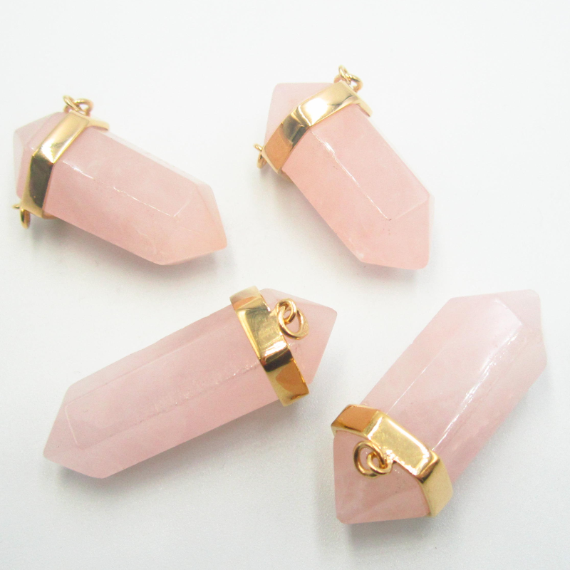 Zawieszka sopel z naturalnym Kwarcem Różowym. Srebro złocone próba 925.