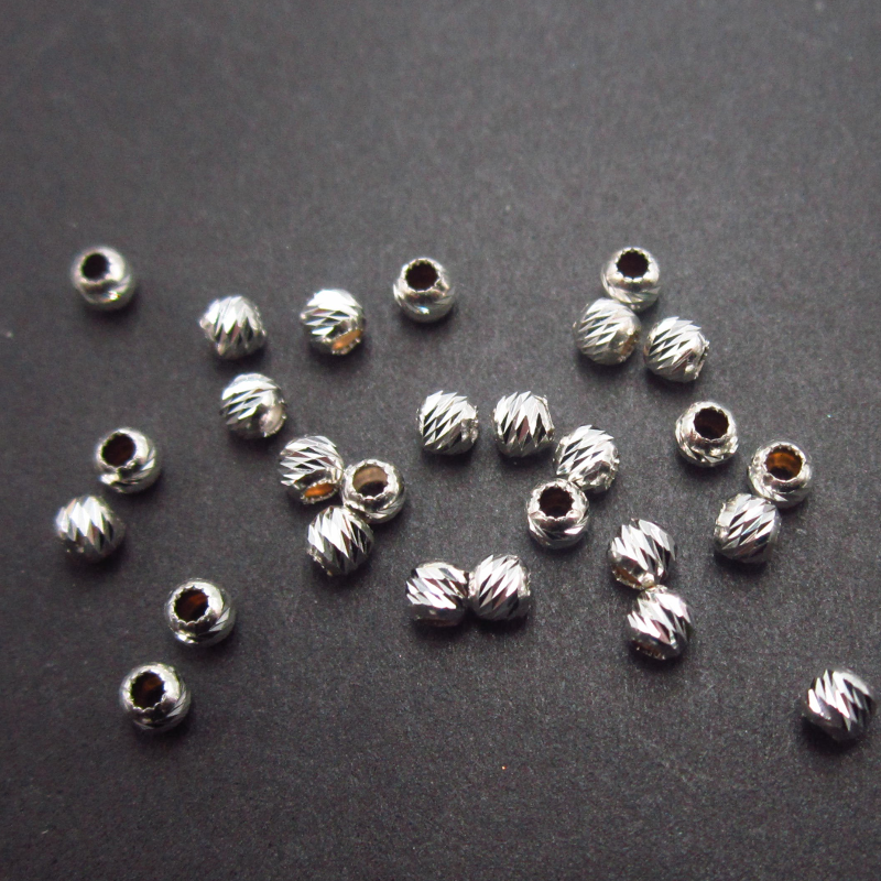 Ozdobna kulka ze srebra w formie żłobionej przekładki o klasycznym, neutralnym charakterze. Diamentowa, karbowana powierzchnia tworzy subtelny efekt gry światła i nadaje elementowi biżuteryjnej głębi, zachowując przy tym niewielki rozmiar idealny do precyzyjnych, delikatnych projektów.