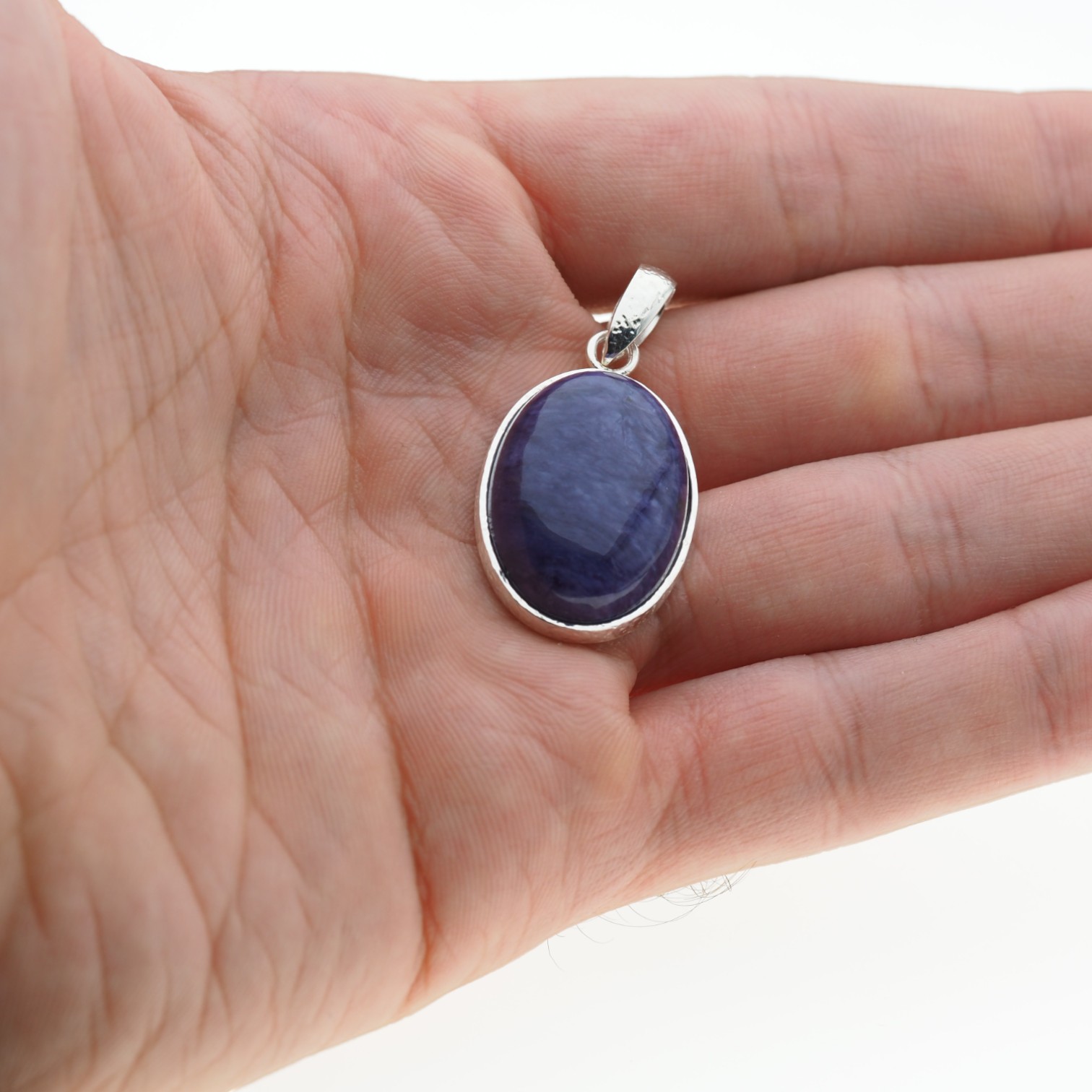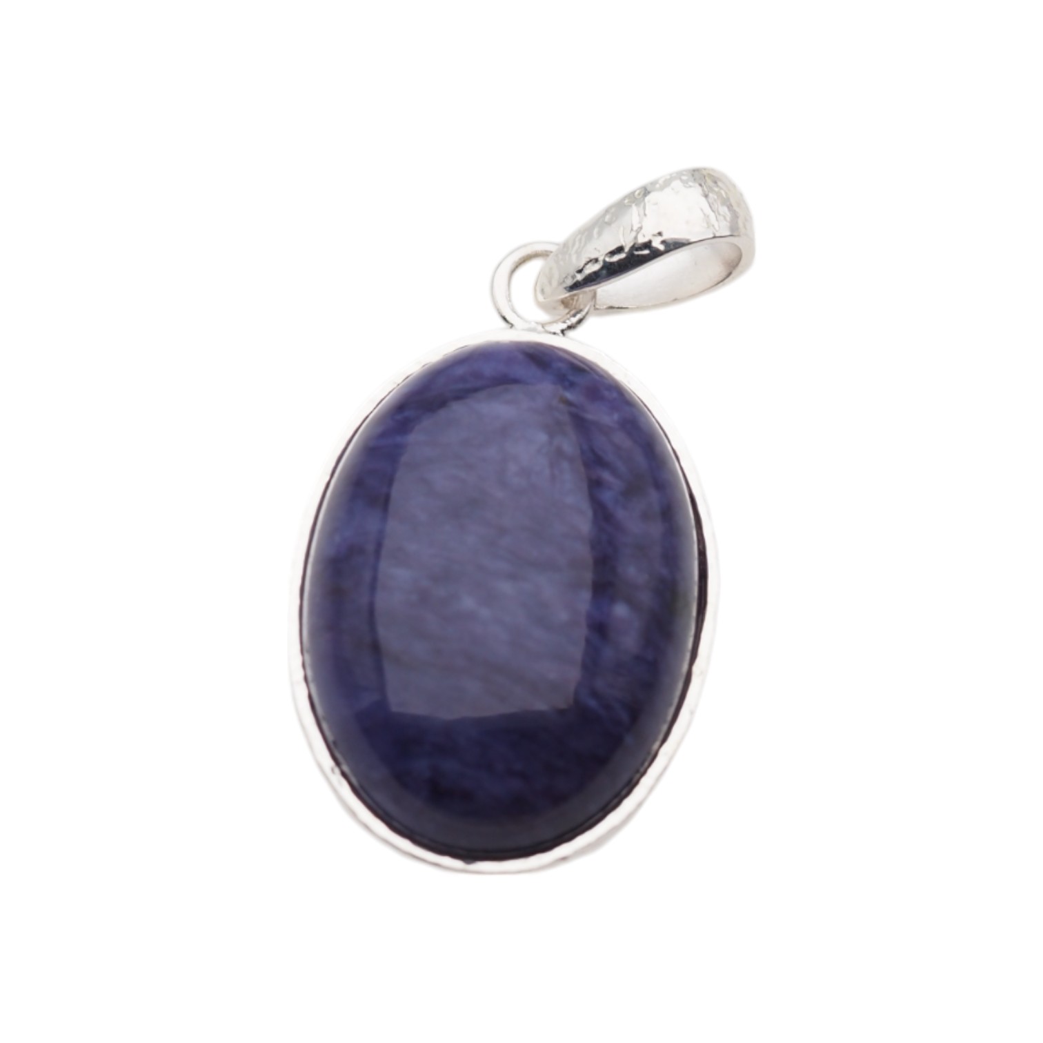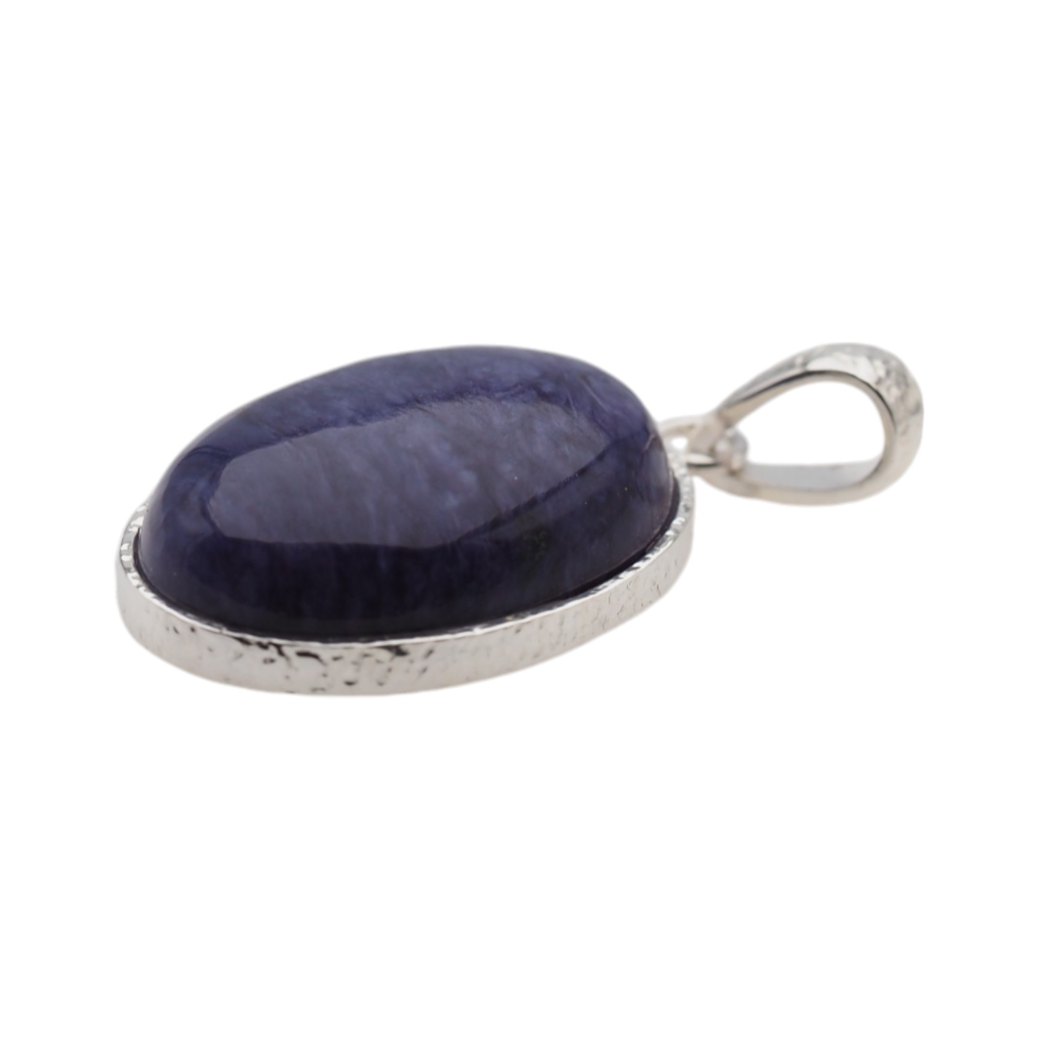 Naturalny kamień półszlachetny w kształcie owalnym w srebrnej oprawie.
