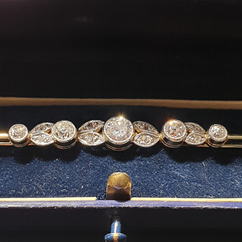 Antyczna Broszka w stylu secesyjnym z brylantami w starym europejskim szlifie