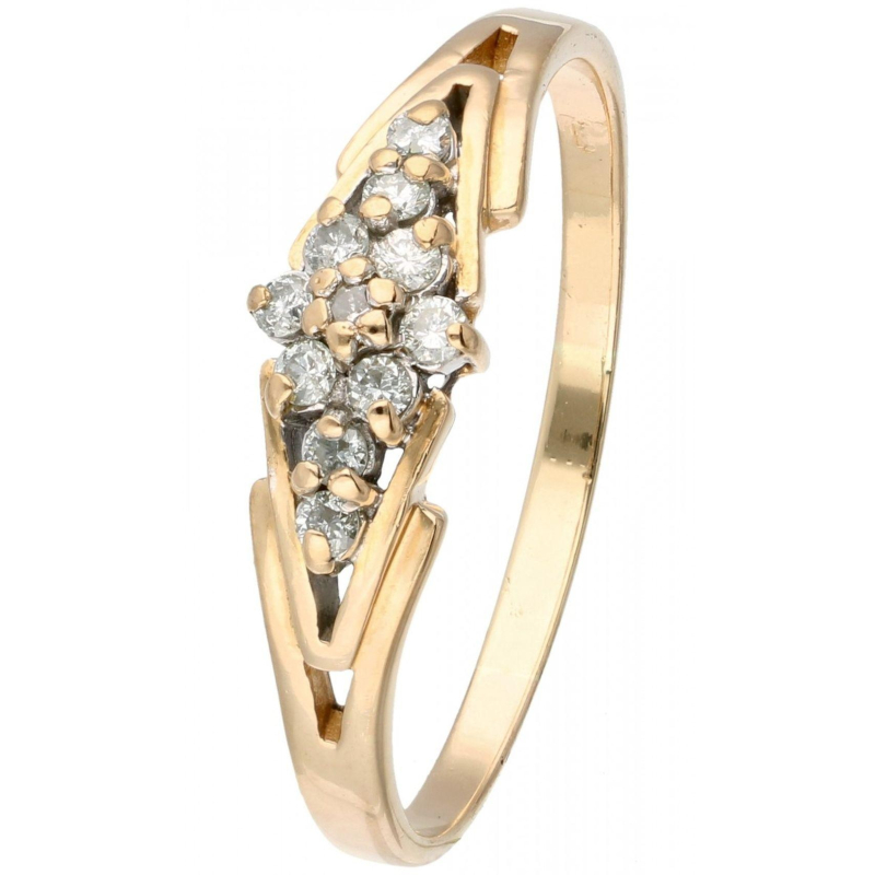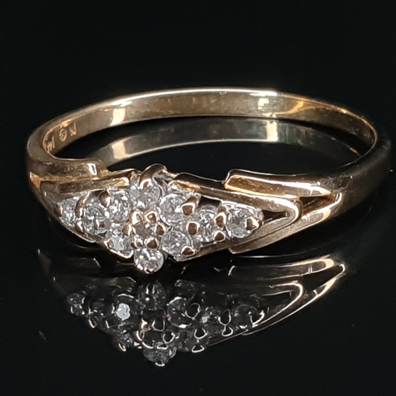 Pierścionek (vintage) - żółte złoto z brylantami (połowa XX wieku)