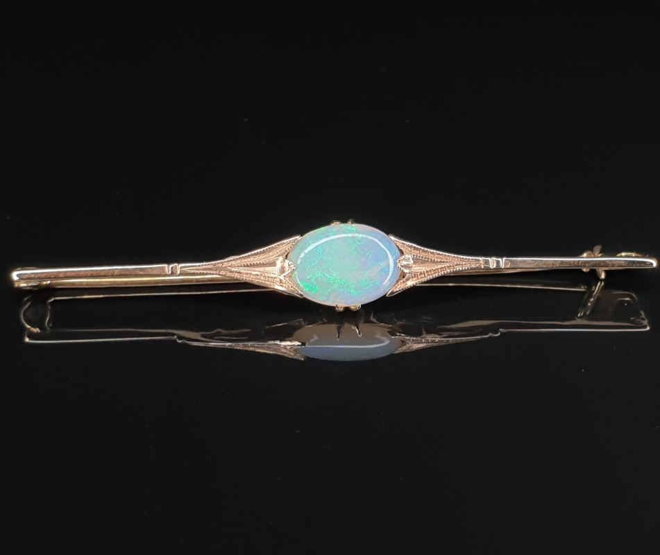 Broszka (vintage) - żółte złoto z etiopskim opalem walo (połowa XX wieku)