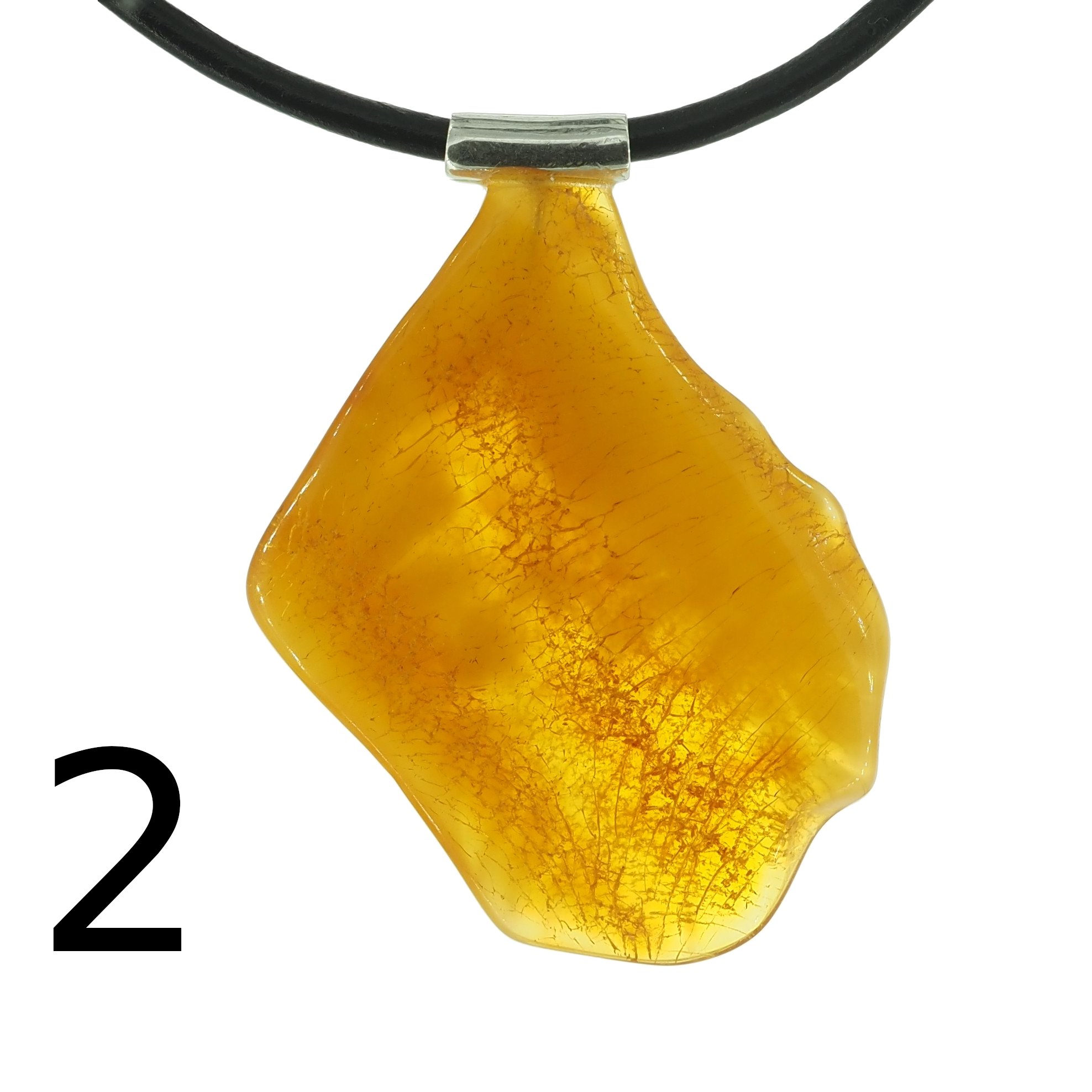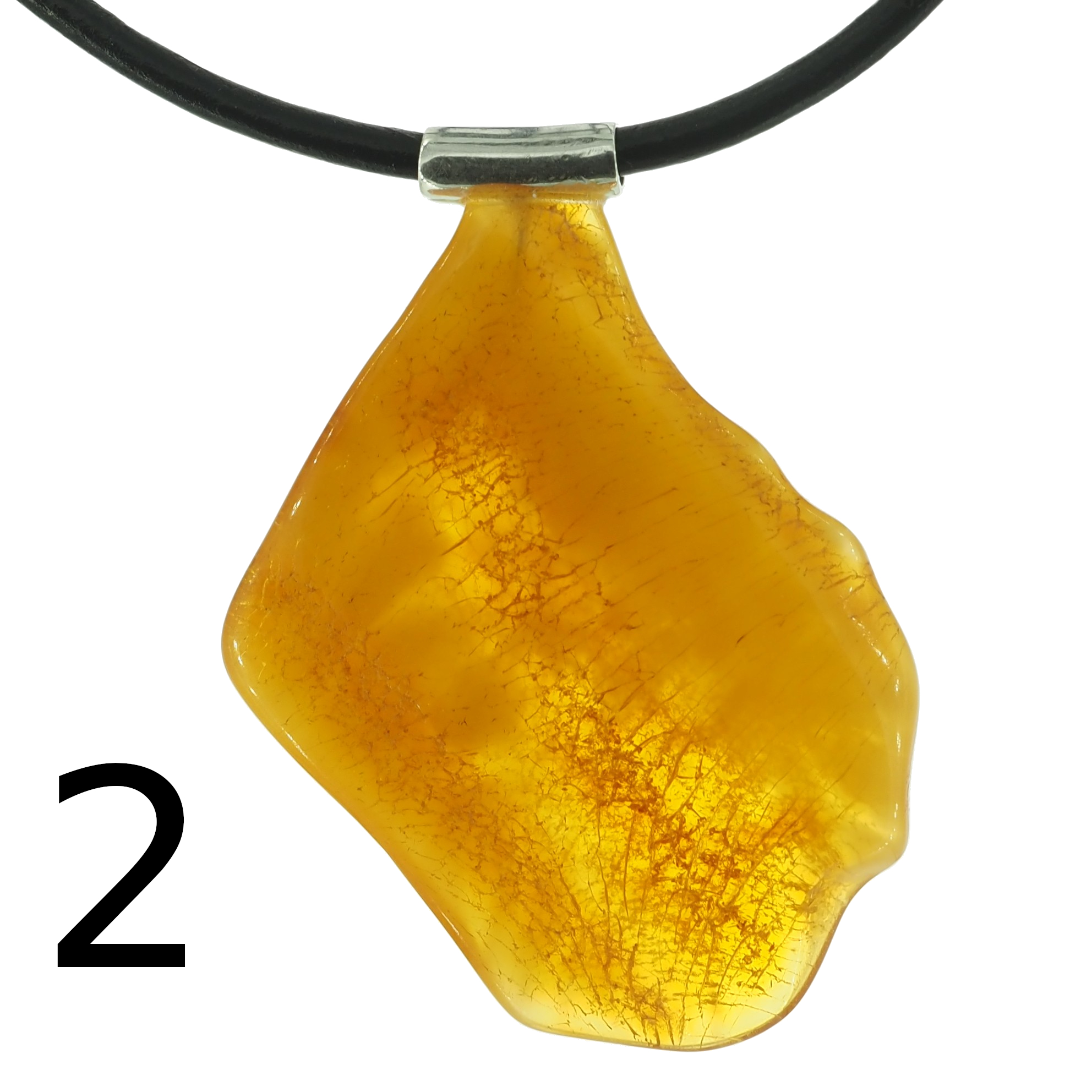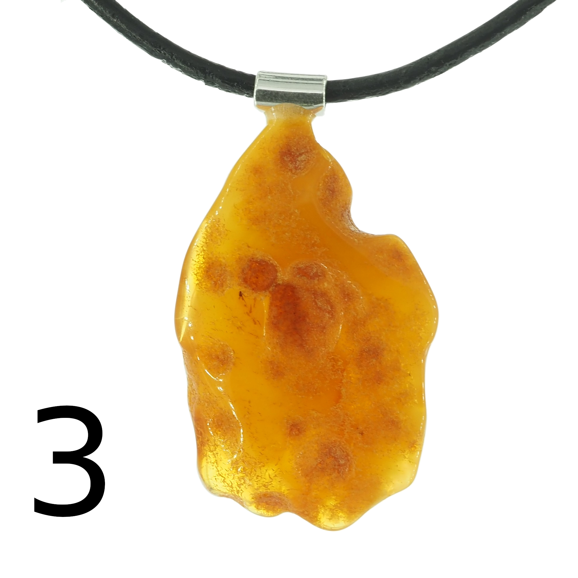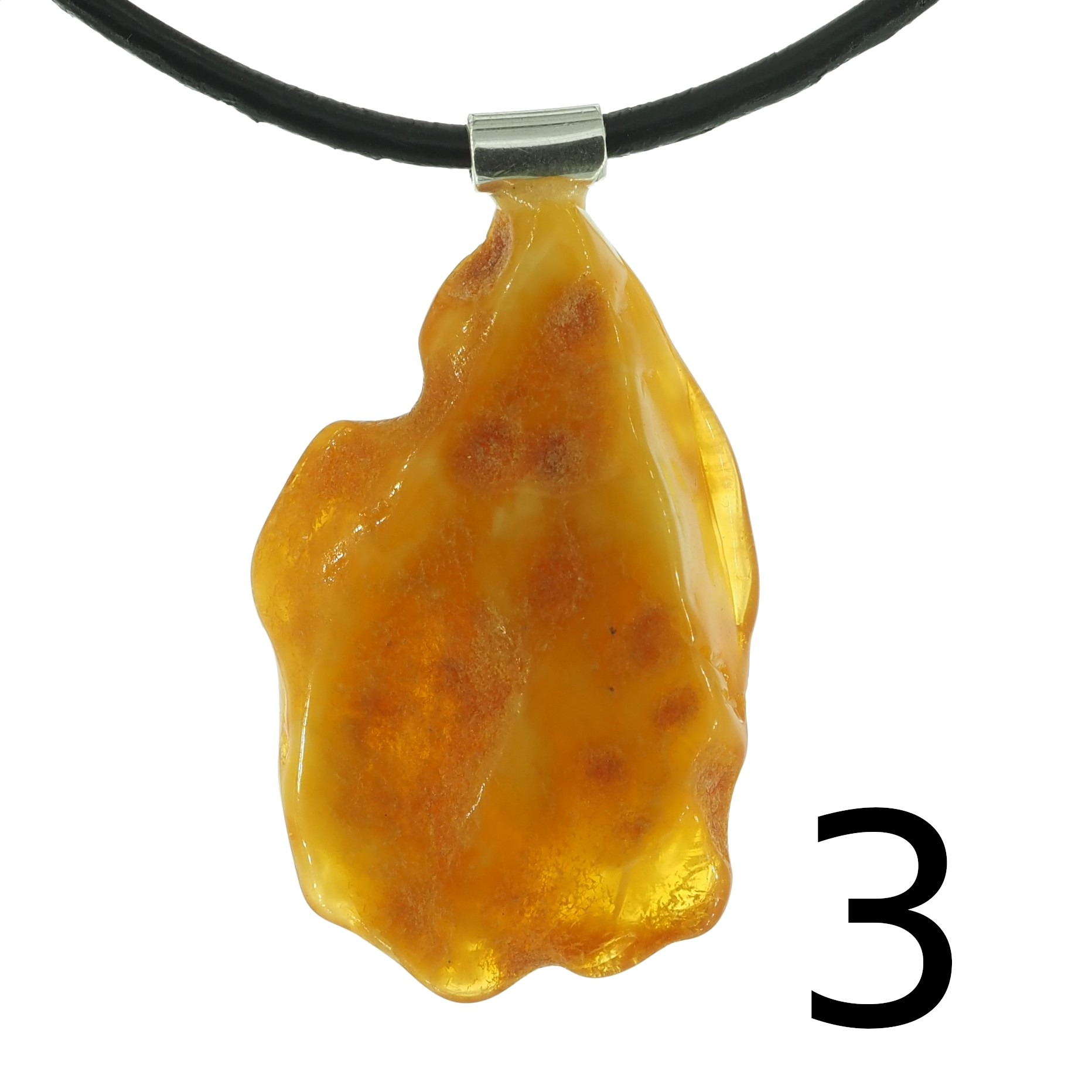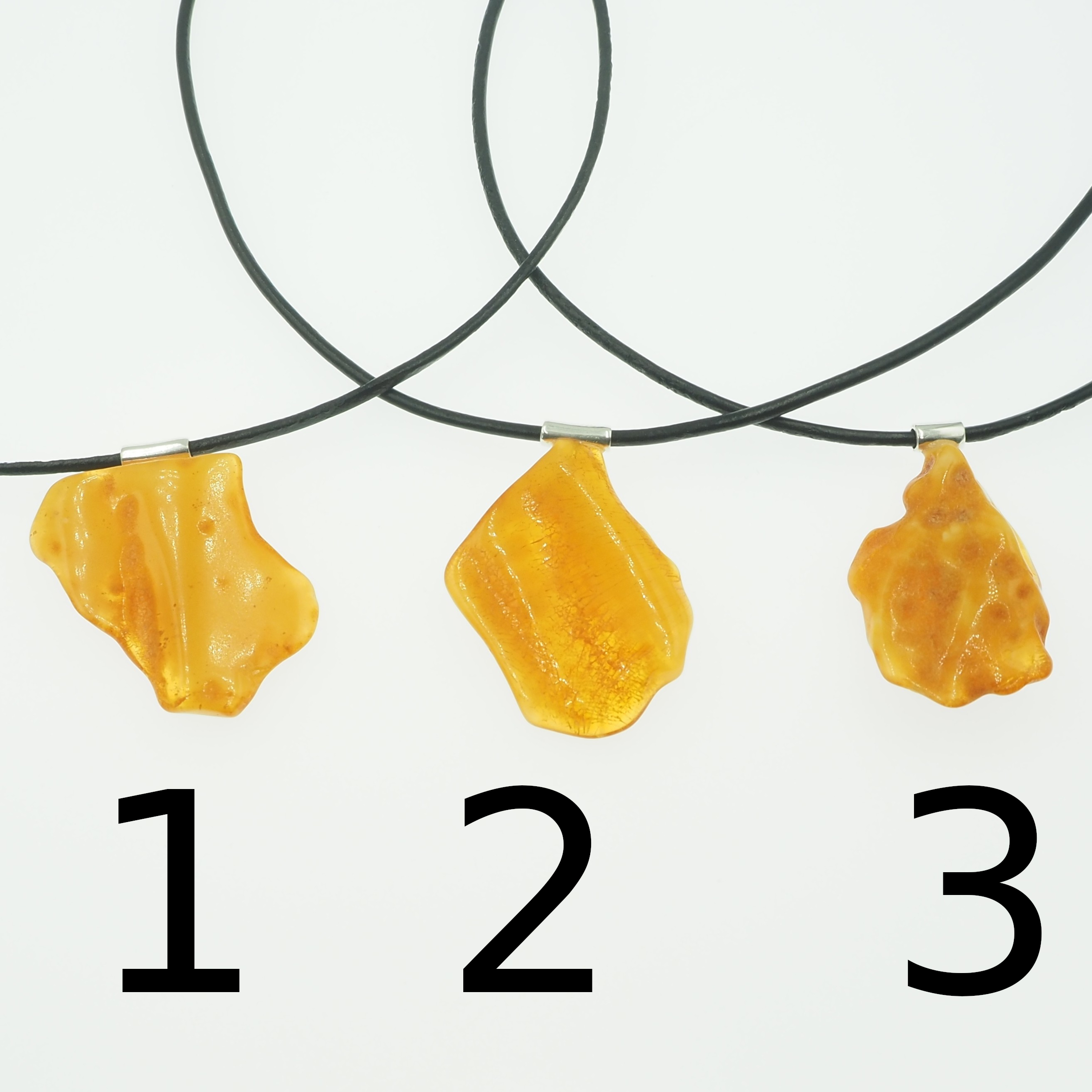Surowy Naturalny Bursztyn i srebro - naszyjnik na rzemieniu