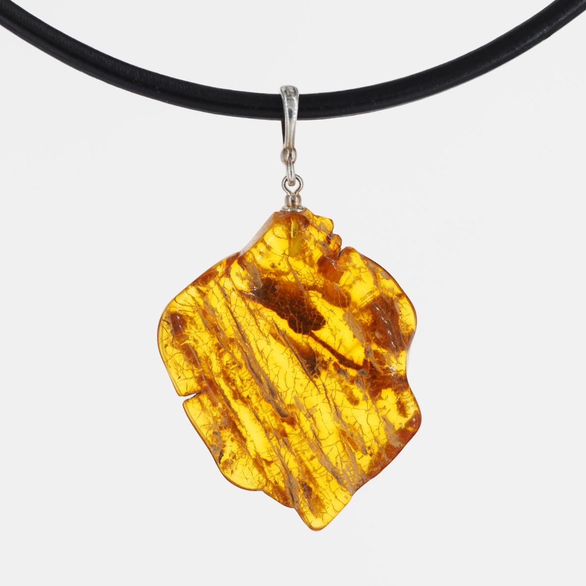 Surowy Naturalny Bursztyn i srebro - naszyjnik na rzemieniu