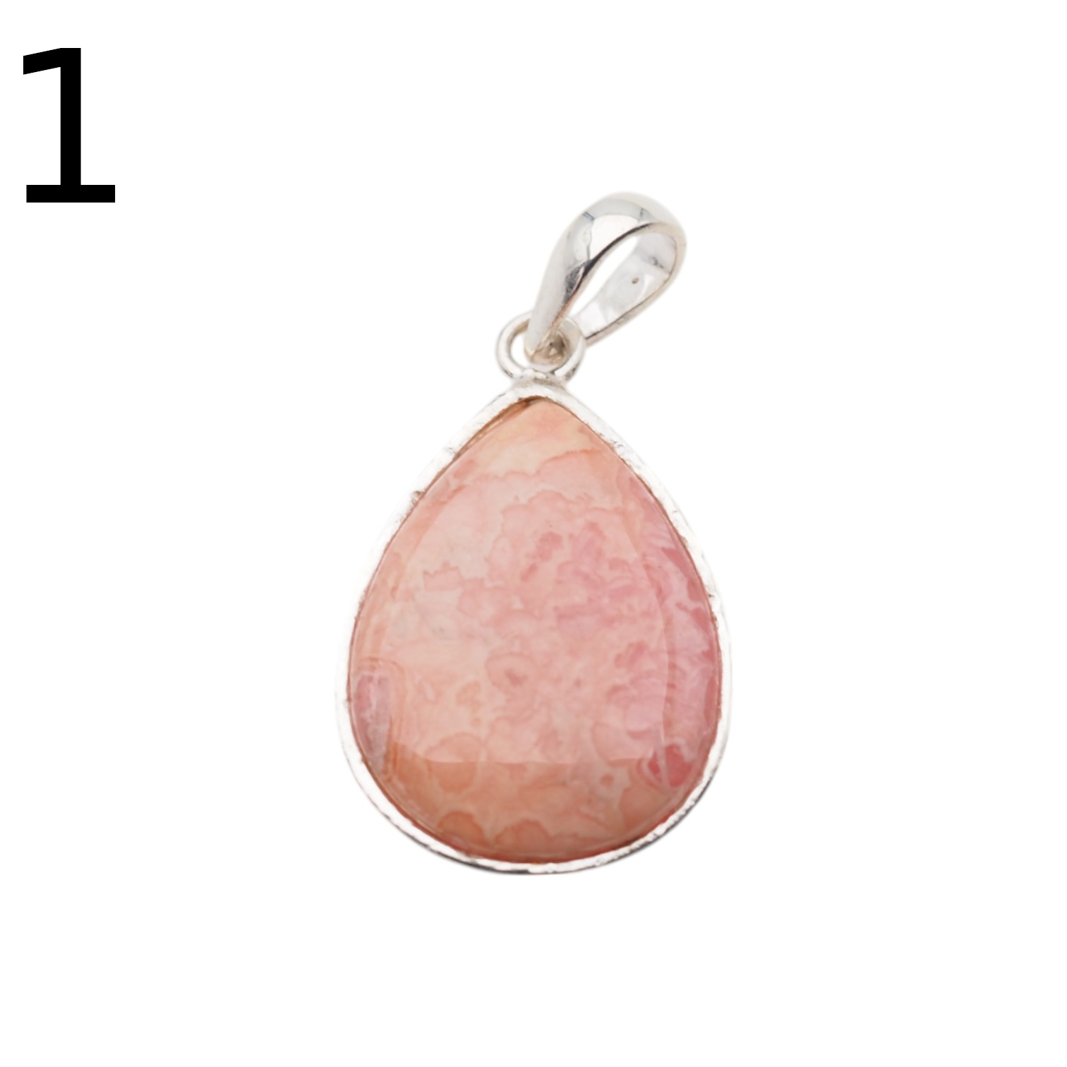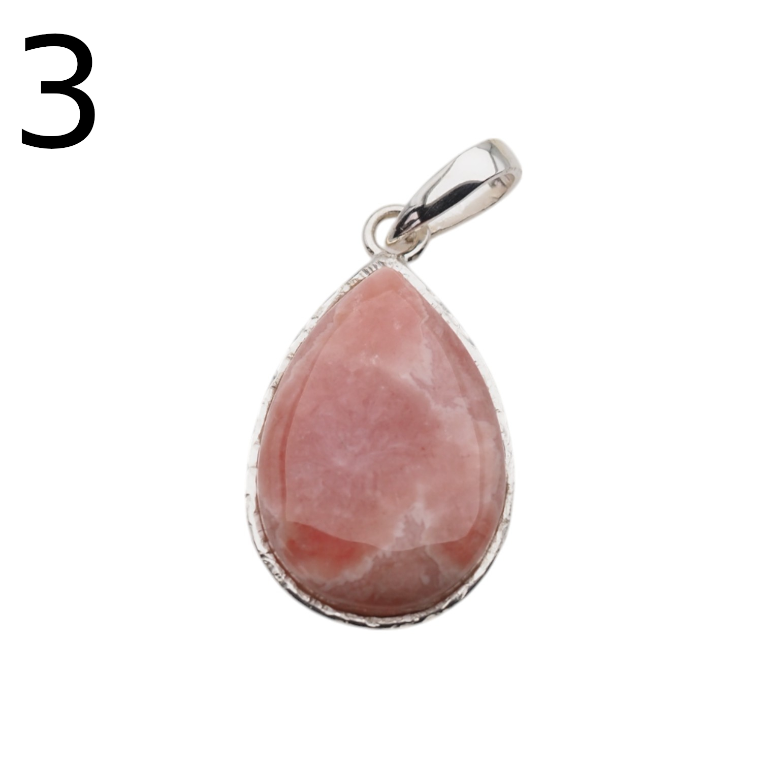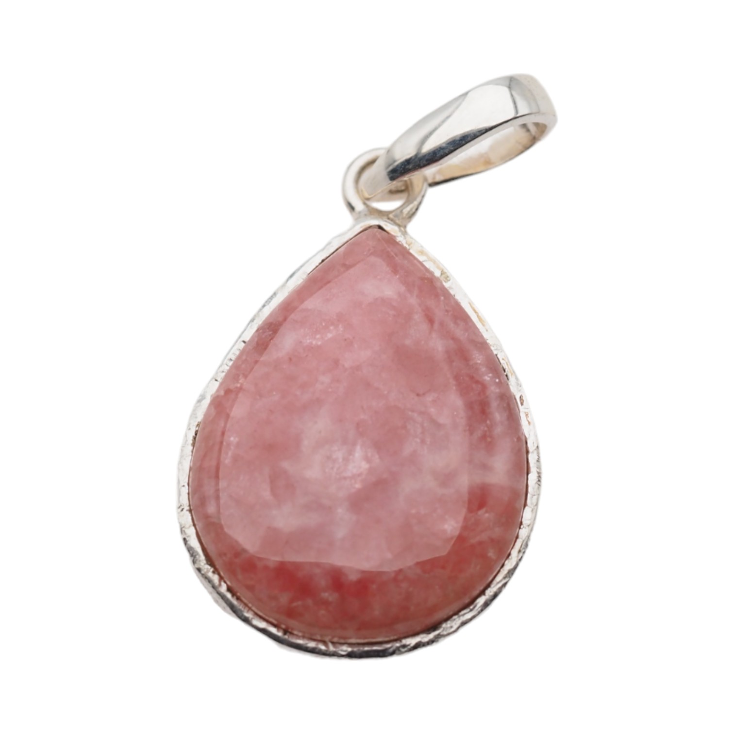 Ręcznie wykonana zawieszka z rodochrozytem w kształcie łzy przyciąga uwagę ciepłą, różowo-malinową kolorystyką kamienia. Całość osadzono w srebrnej oprawie o młotkowanym wykończeniu, które dodaje biżuterii subtelnej faktury i rzemieślniczego charakteru.