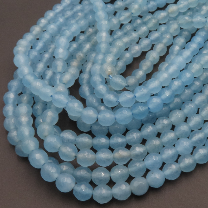 Niebieski Jadeit fasetowany kulki. Kamienie wiercone.