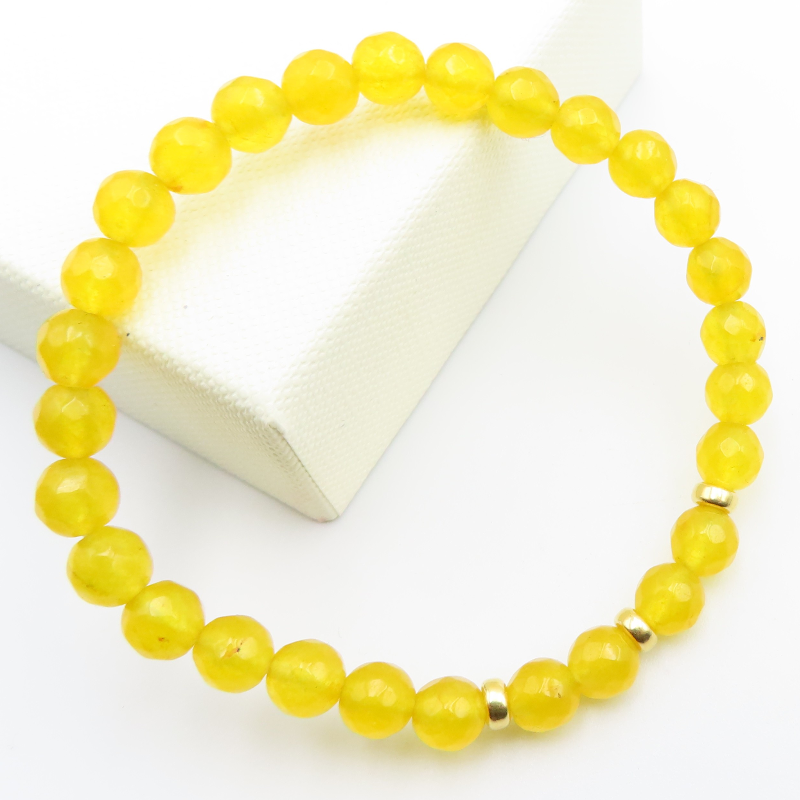 Bransoletka z fasetowanego jadeitu zachwyca subtelnym blaskiem drobnych, kulistych kamieni. Połączenie naturalnej zieleni jadeitu z detalami ze srebra tworzy elegancką, a jednocześnie lekką wizualnie kompozycję – idealną dla osób, które lubią biżuterię o spokojnym, szlachetnym charakterze.