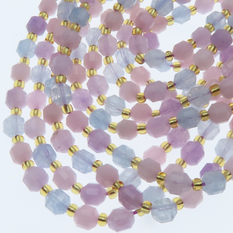 Mix naturalnych fasetowanych kamieni - Amazonit, Akwamaryn, Kwarc Różowy, wielościany.