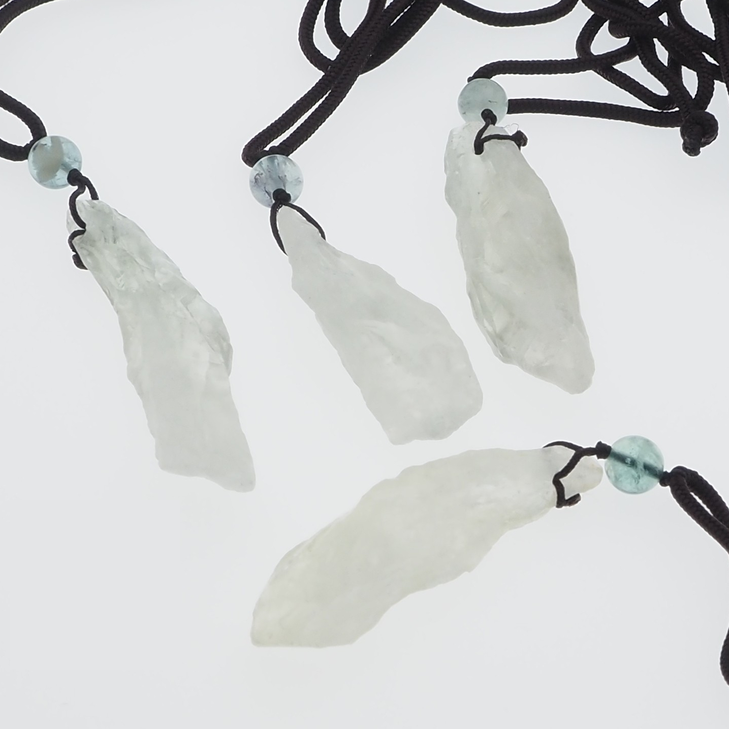 Naszyjnik Ametyst Zielony na sznurku. Z tyłu zakończenie splotem typu makrama.