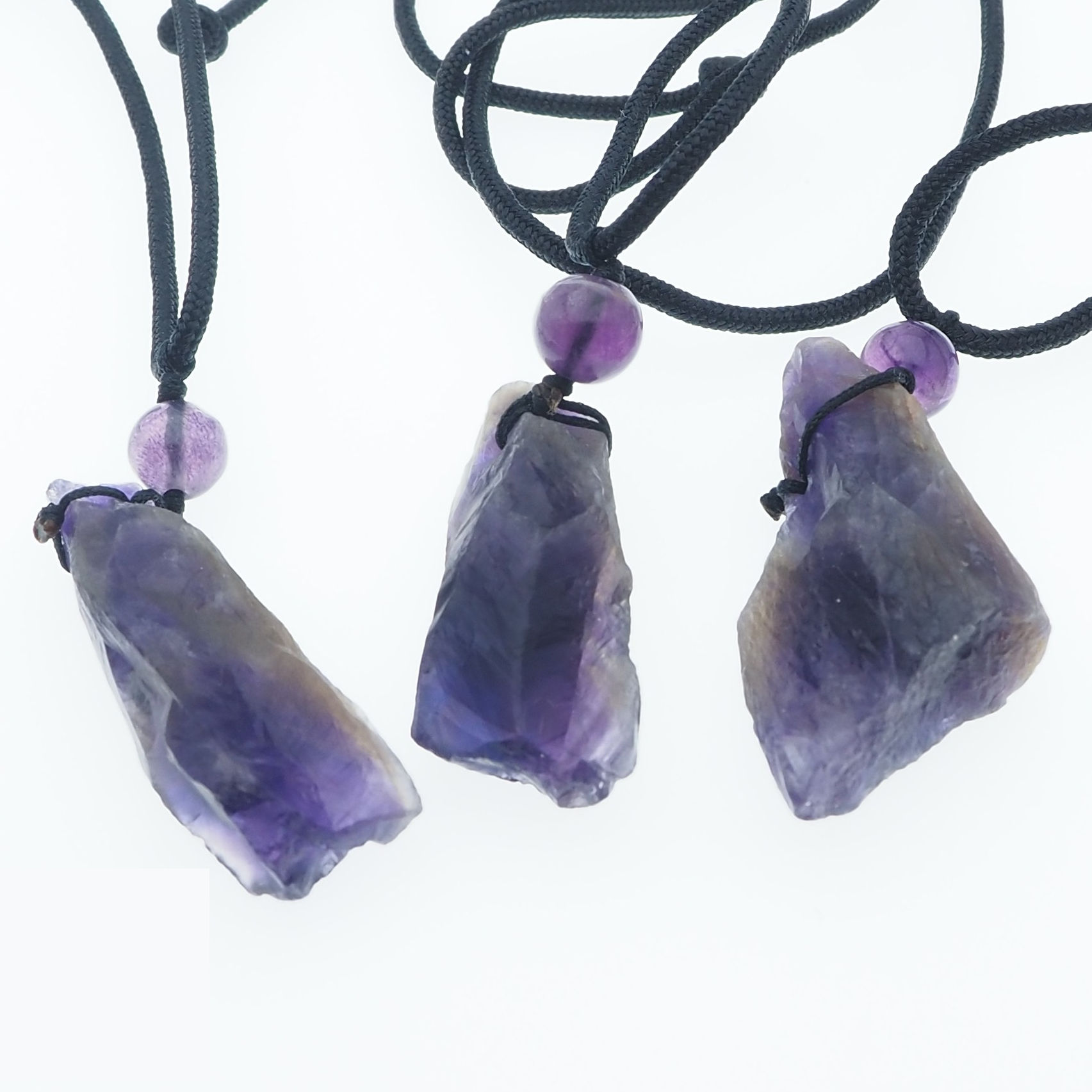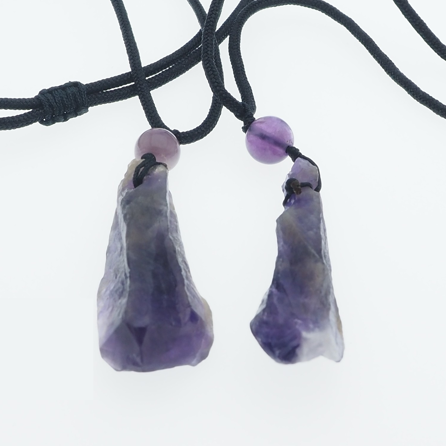 Naszyjnik z Ametystem na sznurku. Z tyłu zakończenie splotem typu makrama.