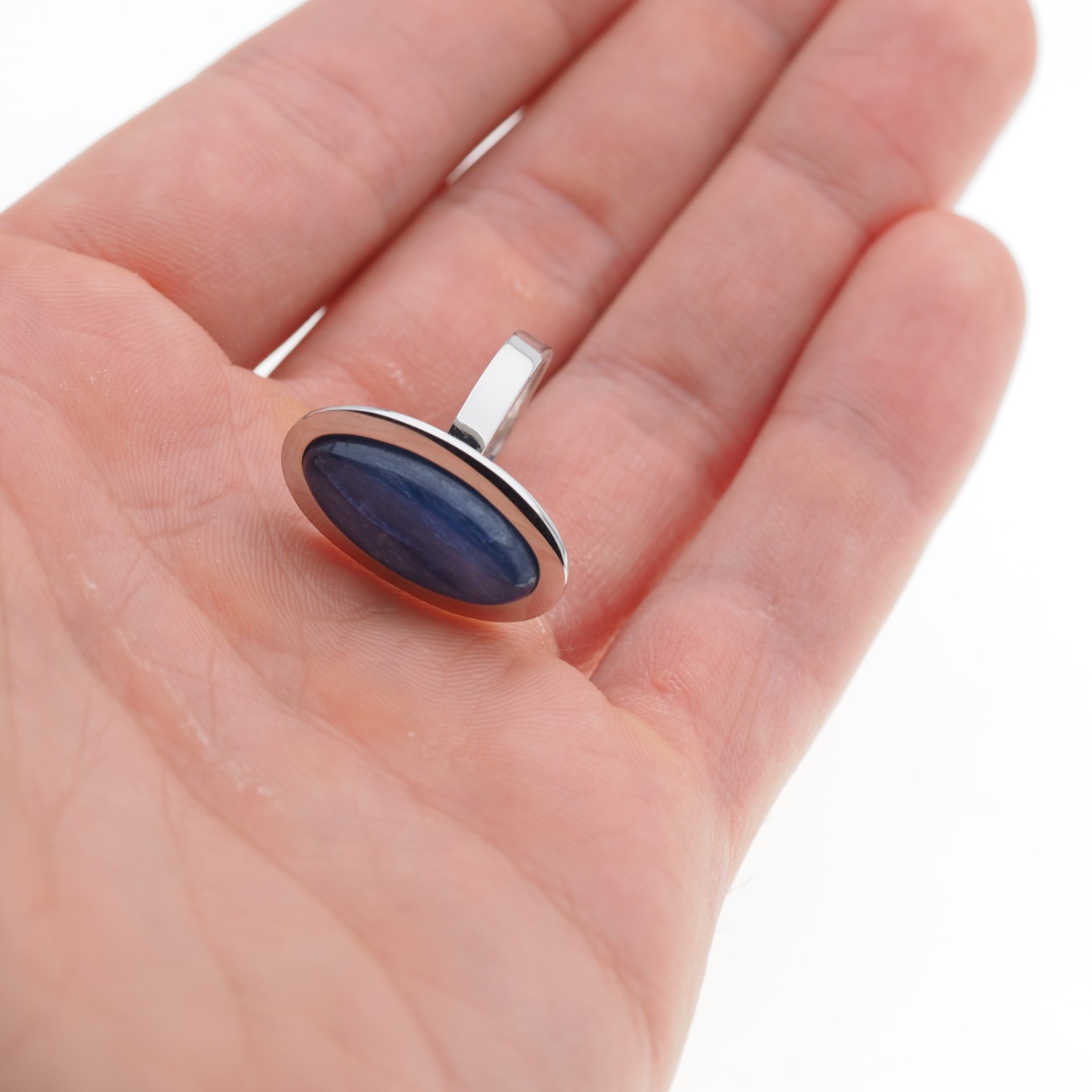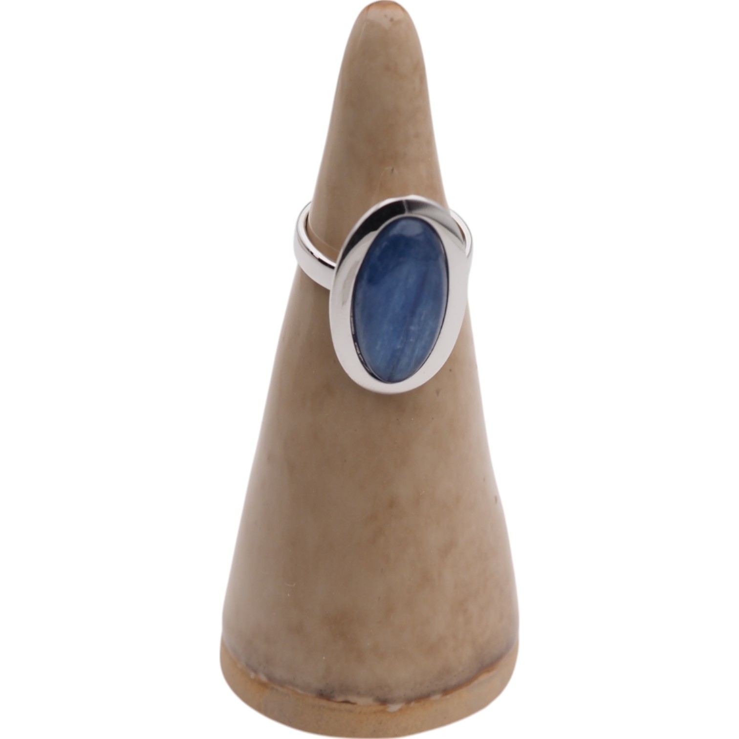 Naturalny Kyanit i srebro rodowane - pierścionek.