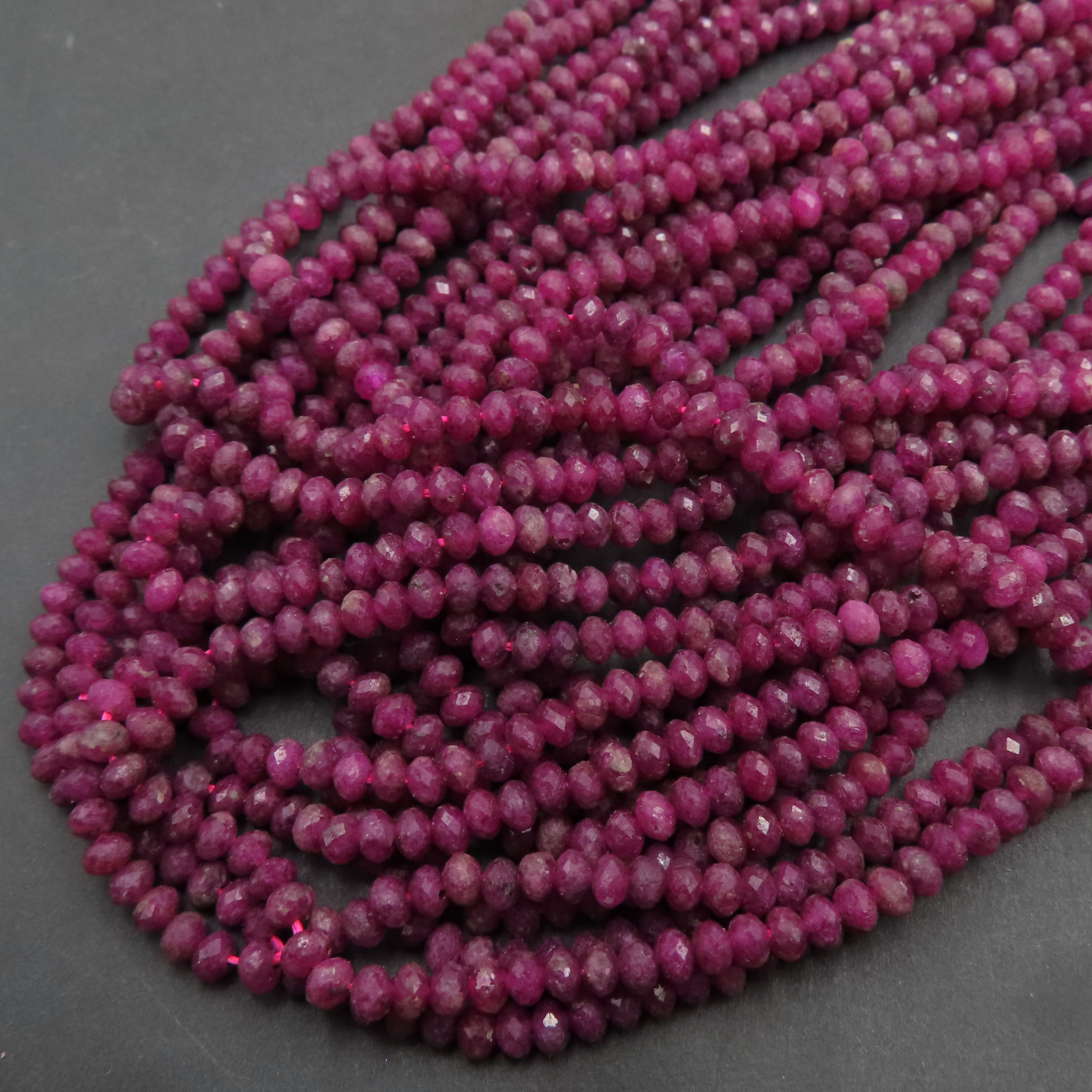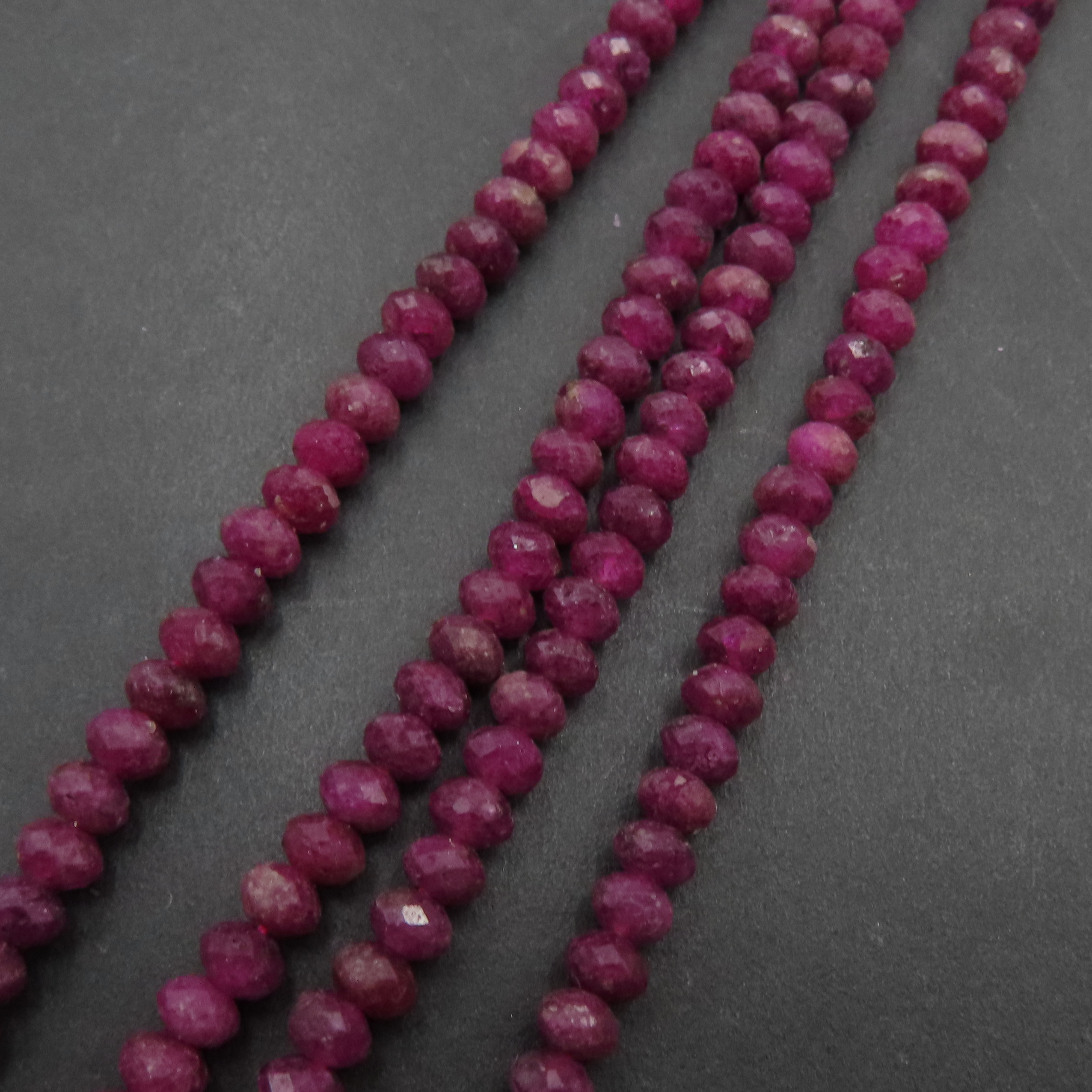 Rubin w formie fasetowanych oponek to wyjątkowy kamień szlachetny o intensywnej barwie czerwieni i szlachetnym blasku. Każdy koralik został precyzyjnie oszlifowany, by podkreślić głębię koloru i naturalne refleksy świetlne. Oponki 3.5x2.5 mm są idealne do tworzenia eleganckiej, luksusowej biżuterii, która wyróżnia się subtelnym połyskiem i klasą. Sznur o długości ok. 38 cm składa się z równych, błyszczących elementów jubilerskiej jakości.