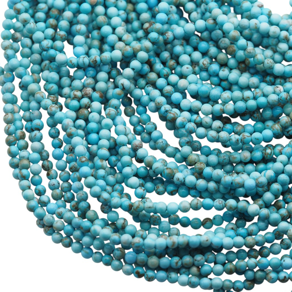 Turkus (howlit) polerowany w formie regularnych, gładkich kulek to klasyka w projektach biżuterii handmade. Kamień ma eleganckie, połyskujące wykończenie i uniwersalny charakter wizualny, który dobrze łączy się zarówno z metalami w kolorze złota, jak i srebra.