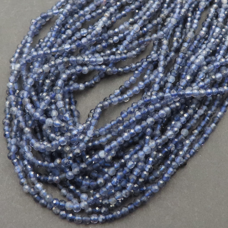 Iolit w formie fasetowanych kulek o średnicy ok. 2,5 mm to naturalny kamień półszlachetny o wyjątkowym, niebiesko-fioletowym odcieniu. Każdy kamień został precyzyjnie oszlifowany, aby wydobyć jego charakterystyczną, szklaną głębię i subtelny połysk. Sznur ma długość ok. 38 cm, a otwór o średnicy ok. 0,5 mm umożliwia wygodne nawlekanie na cienkie linki, druty jubilerskie lub żyłki.