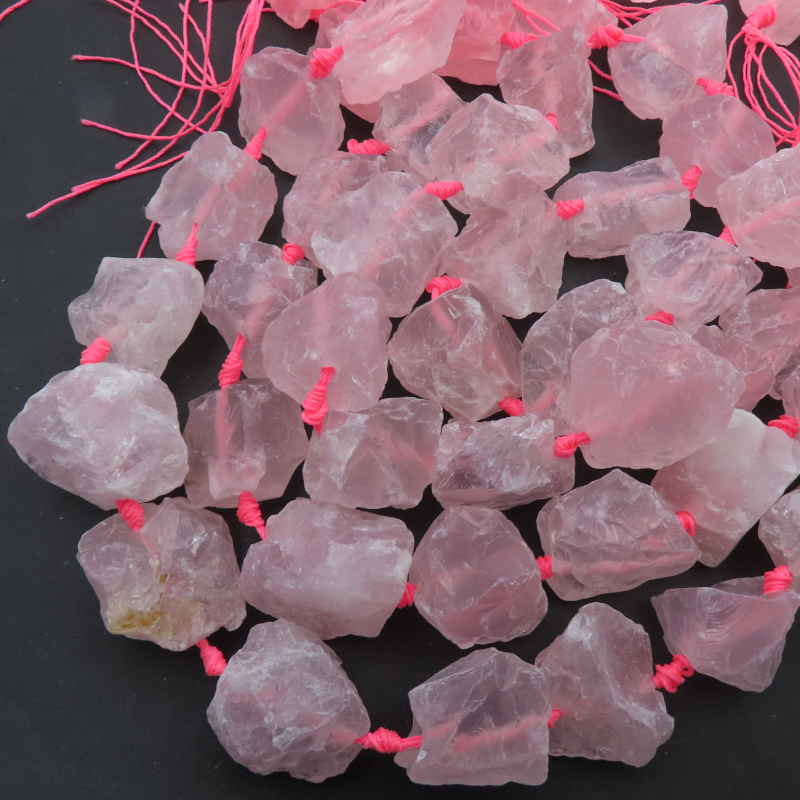 Naturalny Kwarc Różowy surowy, bryłki nieregularne.