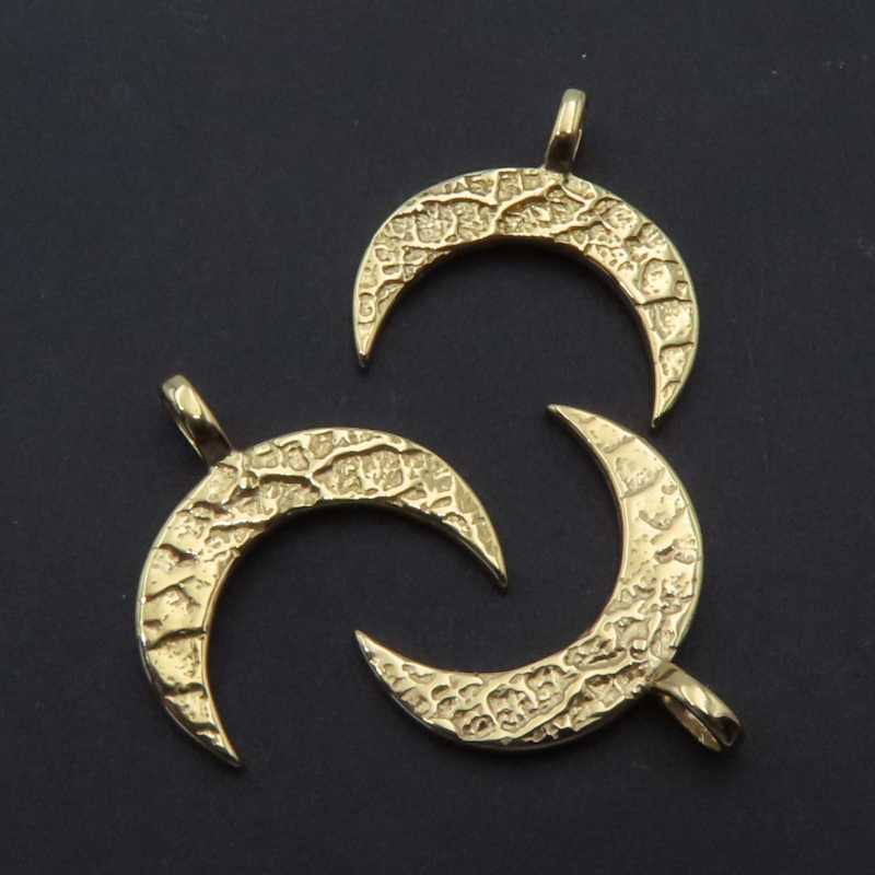 Element ozdobny, zawieszka księżyc młotkowany. Srebro złocone 24K próba 925.