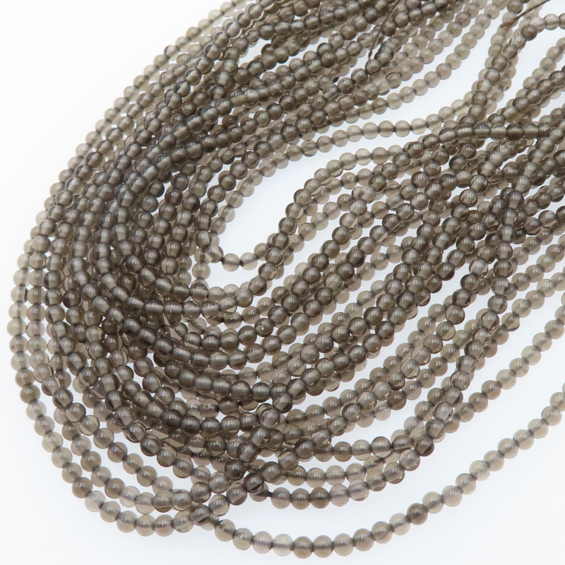 Naturalny kwarc dymny w formie drobnych, polerowanych kulek o średnicy około 2 mm, nawleczony na sznur o długości około 39,5 cm. Kamienie mają delikatny, dymny odcień szaro-brązu, który nadaje biżuterii wyrafinowanego, ale stonowanego charakteru.