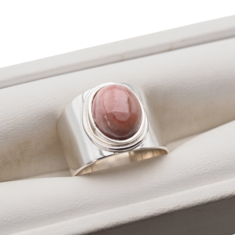 Sygnet z Naturalnym Rodochrozytem owalnym.