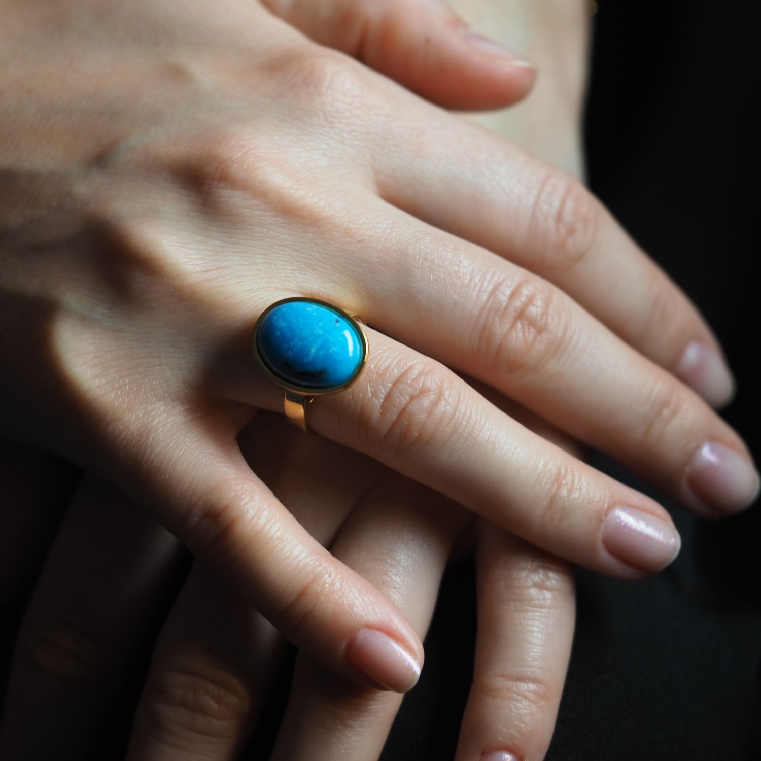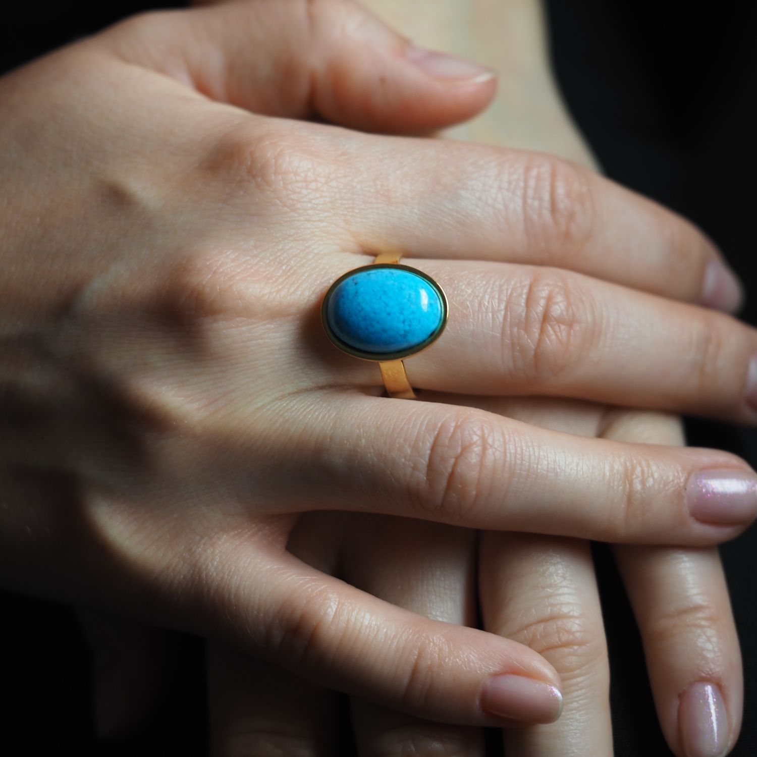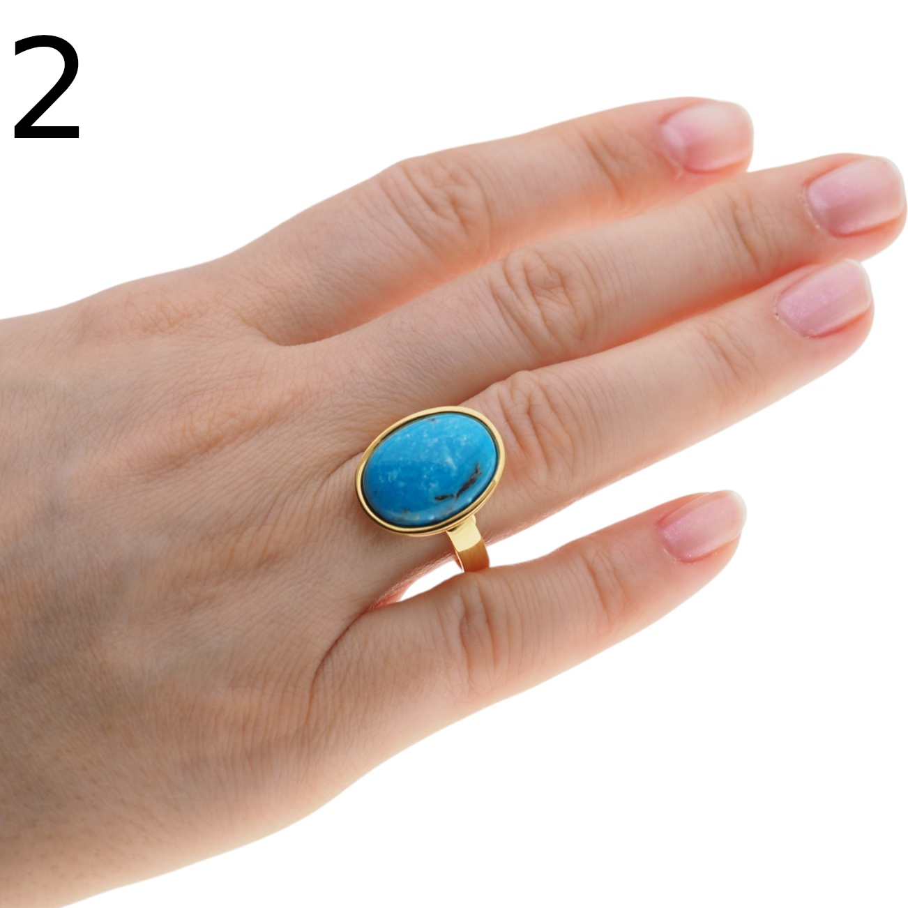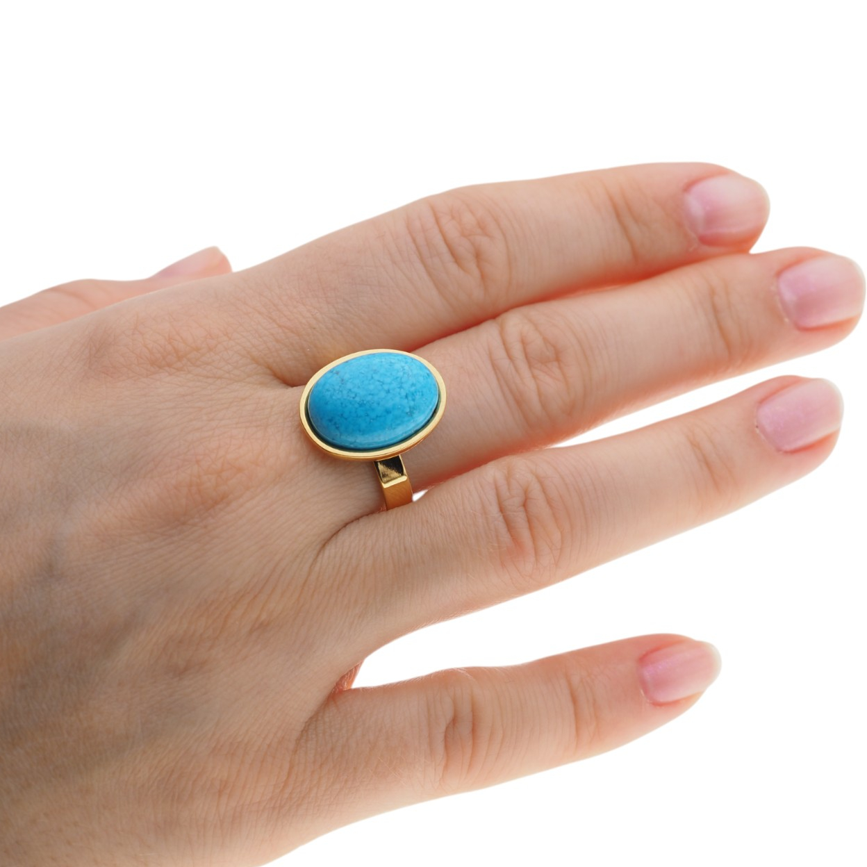 Pierścionek z Naturalnym Turkusem w kształcie owalnym.