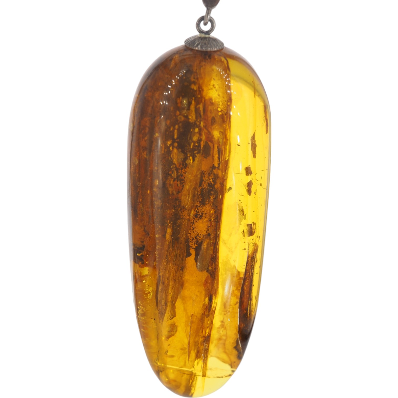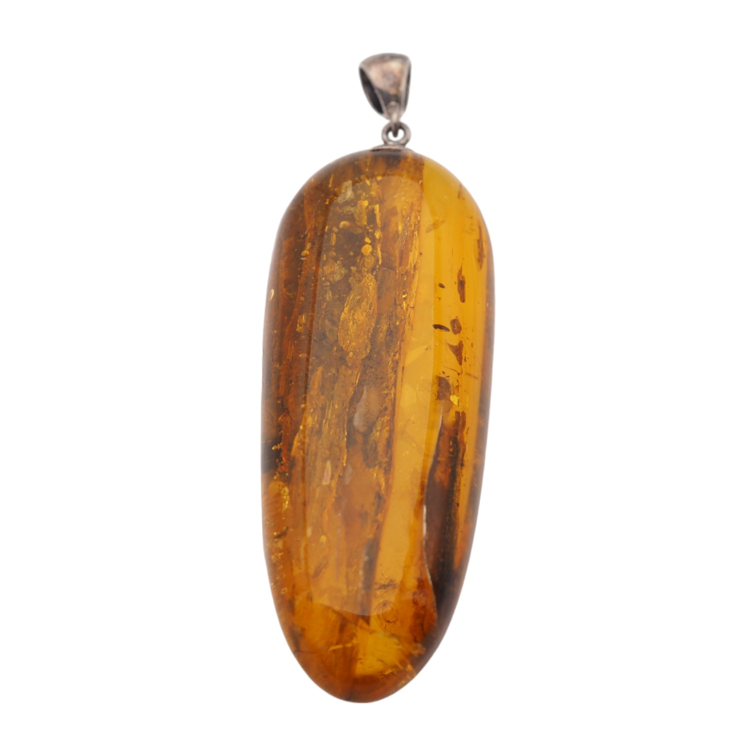 Ręcznie wykonana zawieszka z przezroczystym bursztynem zachwyca lekkością barwy i naturalną głębią. Kamień został ręcznie wyszlifowany i wypolerowany, aby podkreślić jego przejrzystość, a srebrna oprawa z oksydowanego srebra 925 dodaje całości szlachetnego, lekko vintage’owego charakteru.