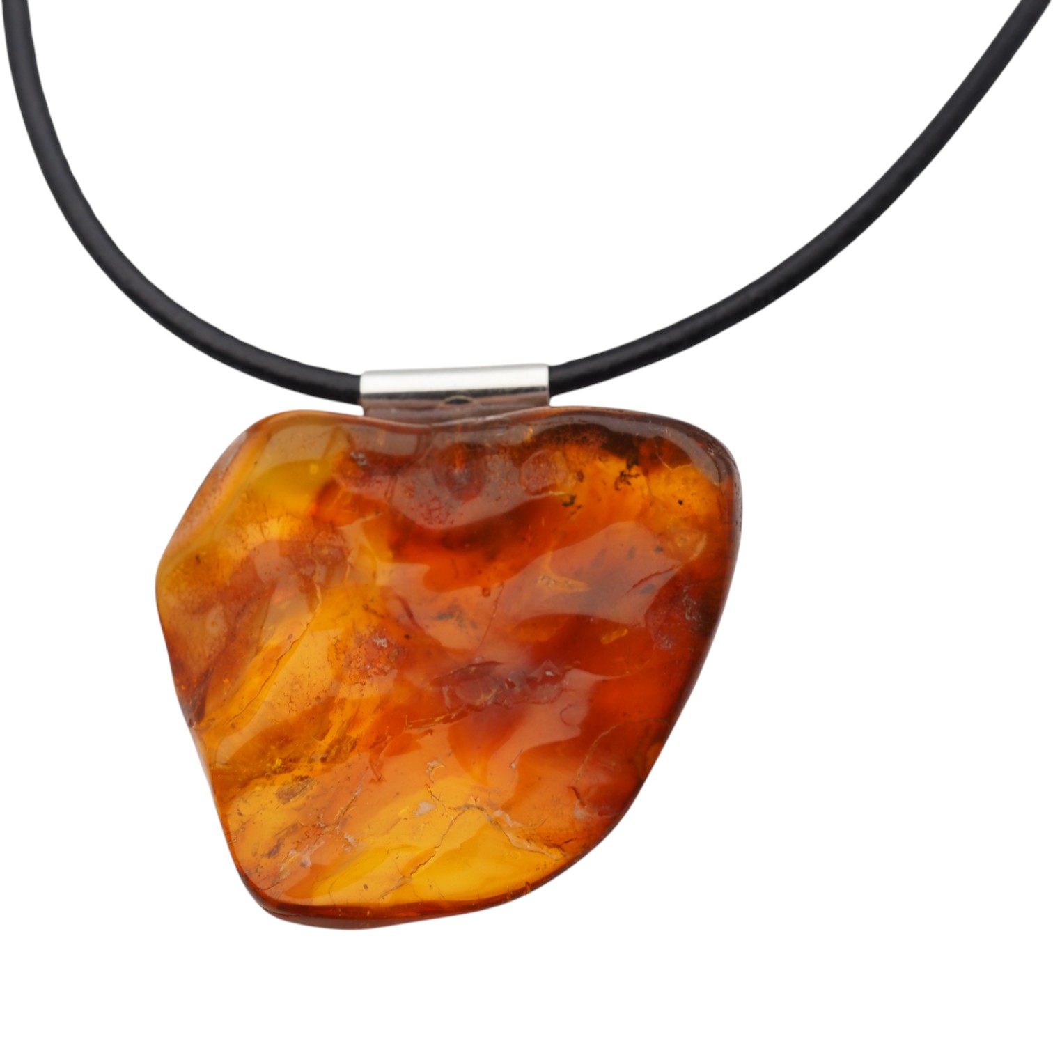 Naturalny Bursztyn surowy i srebro - naszyjnik na rzemieniu