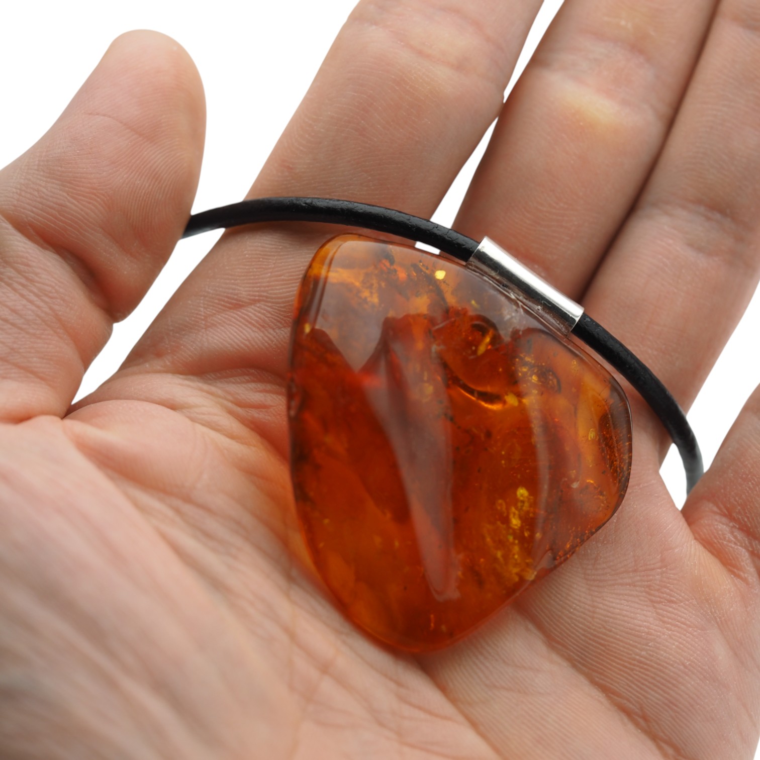 Wielkość bursztynu: 42x44x11 mm.