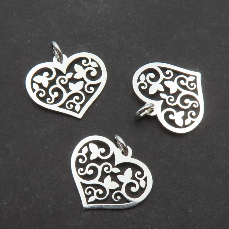 Element ozdobny, zawieszka serce ażurowe. Srebro próba 925.