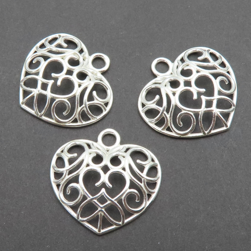 Element ozdobny, zawieszka serce ażurowe. Srebro próba 925.