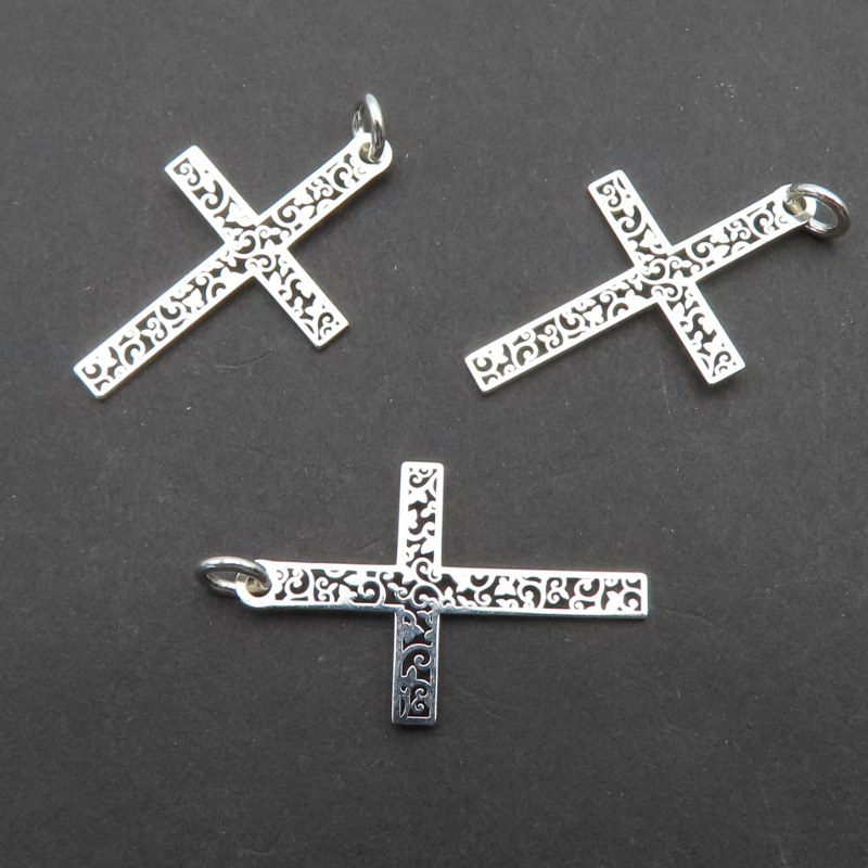 Element ozdobny, zawieszka ażurowy krzyżyk. Srebro próba 925.