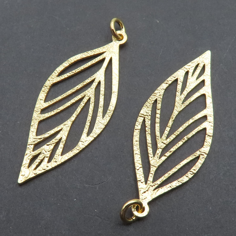 Element ozdobny, zawieszka liść młotkowany. Srebro złocone 24K próba 925.