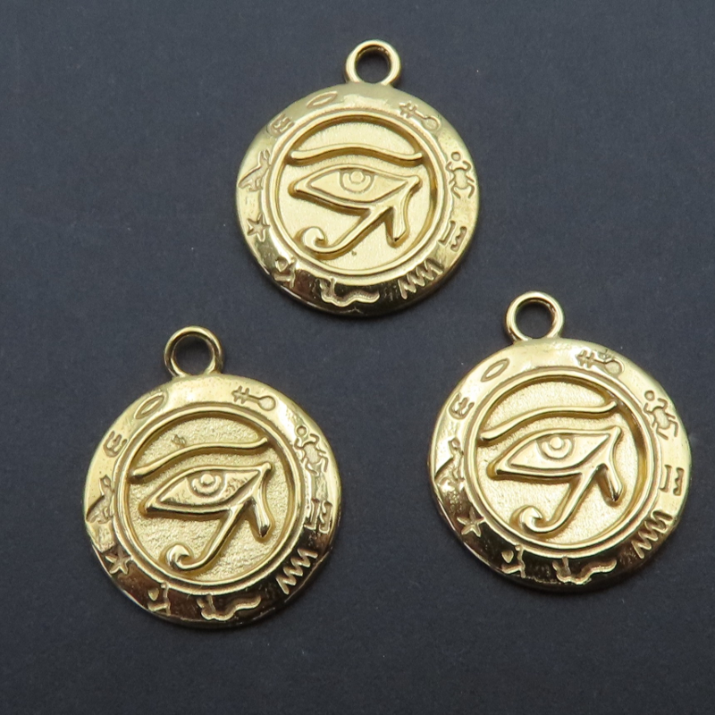 Element ozdobny, zawieszka Oko Horusa. Srebro złocone 24K próba 925.