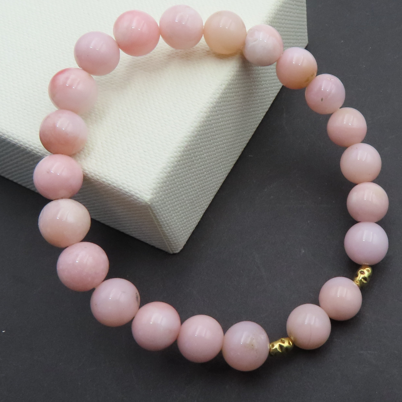 Opal Różowy i srebro złocone. BRANSOLETKA NA GUMCE.