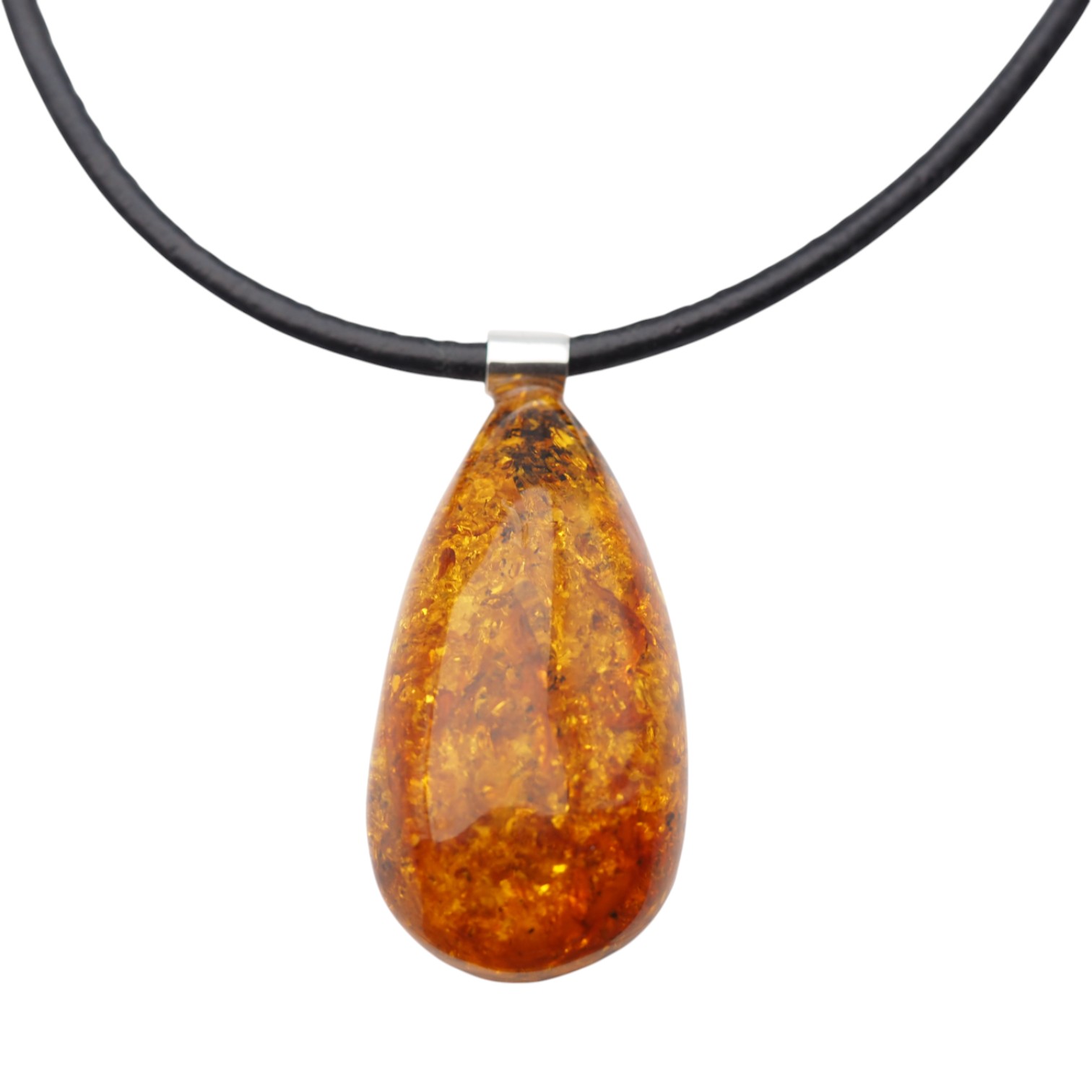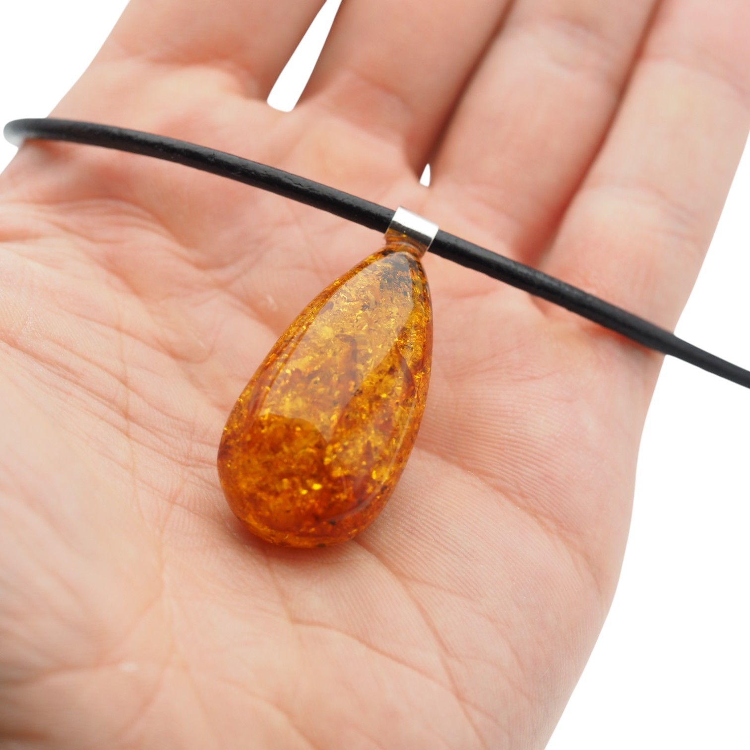 Naszyjnik z naturalnym Bursztynem na rzemieniu