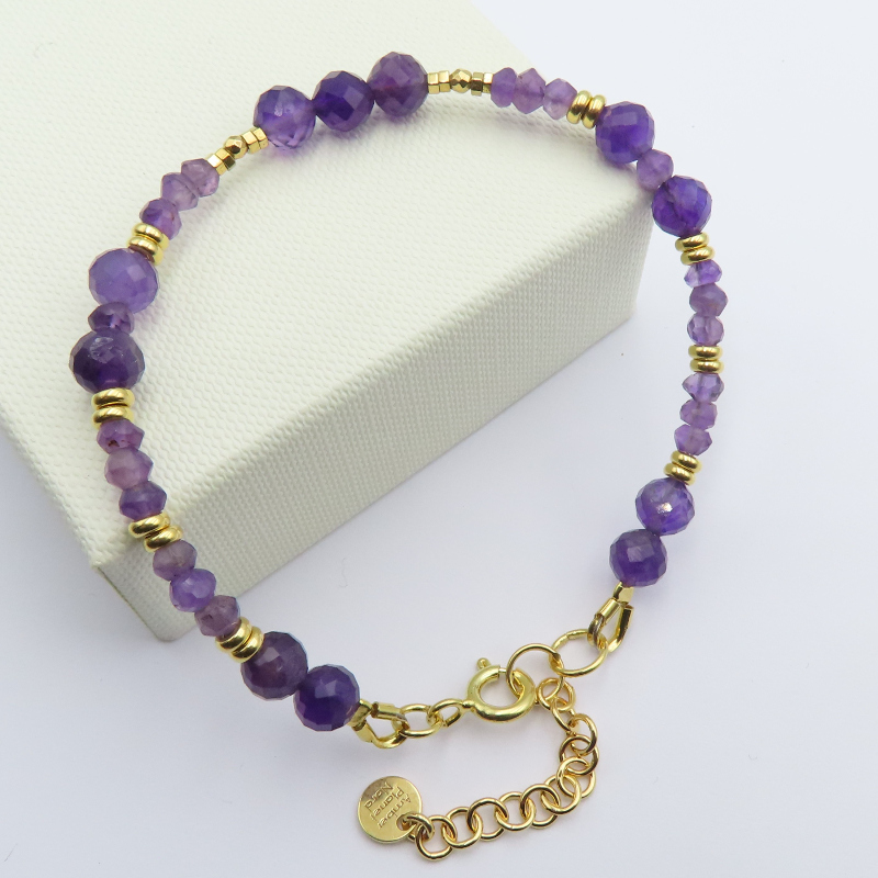 Bransoleta ametyst fasetowany, hematyt i srebro złocone.