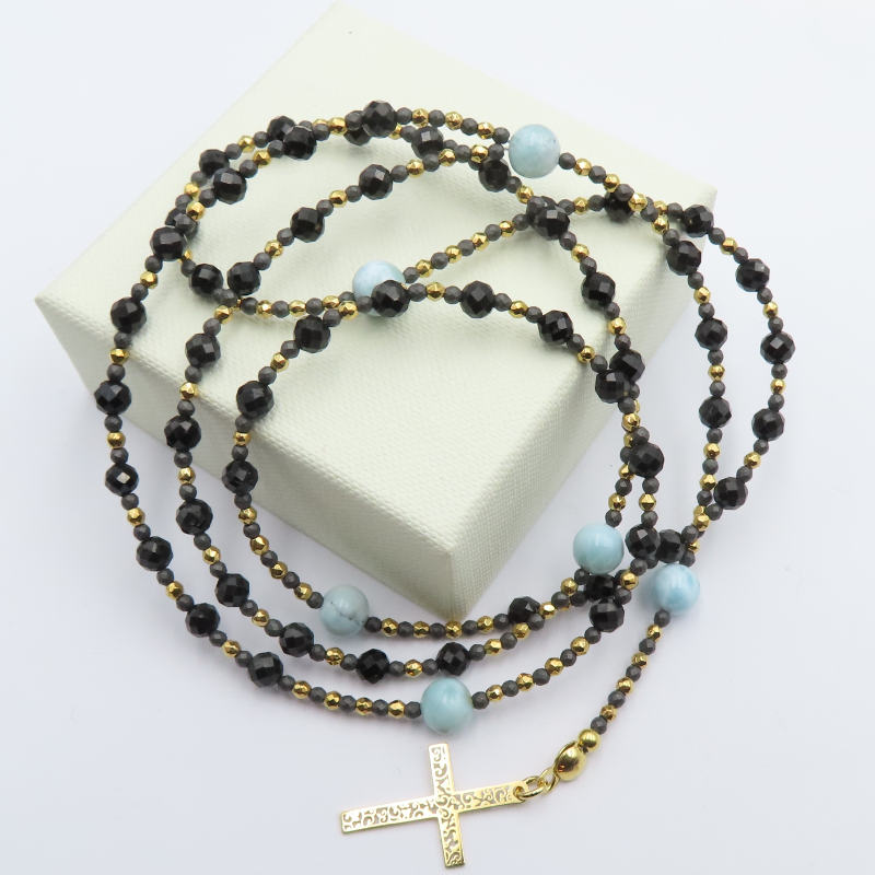 Naszyjnik Turmalin, Larimar, Hematyt i srebro.