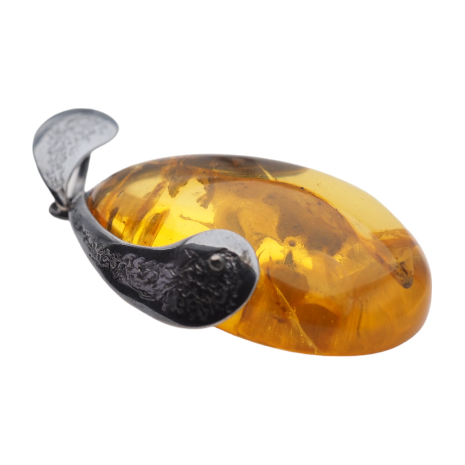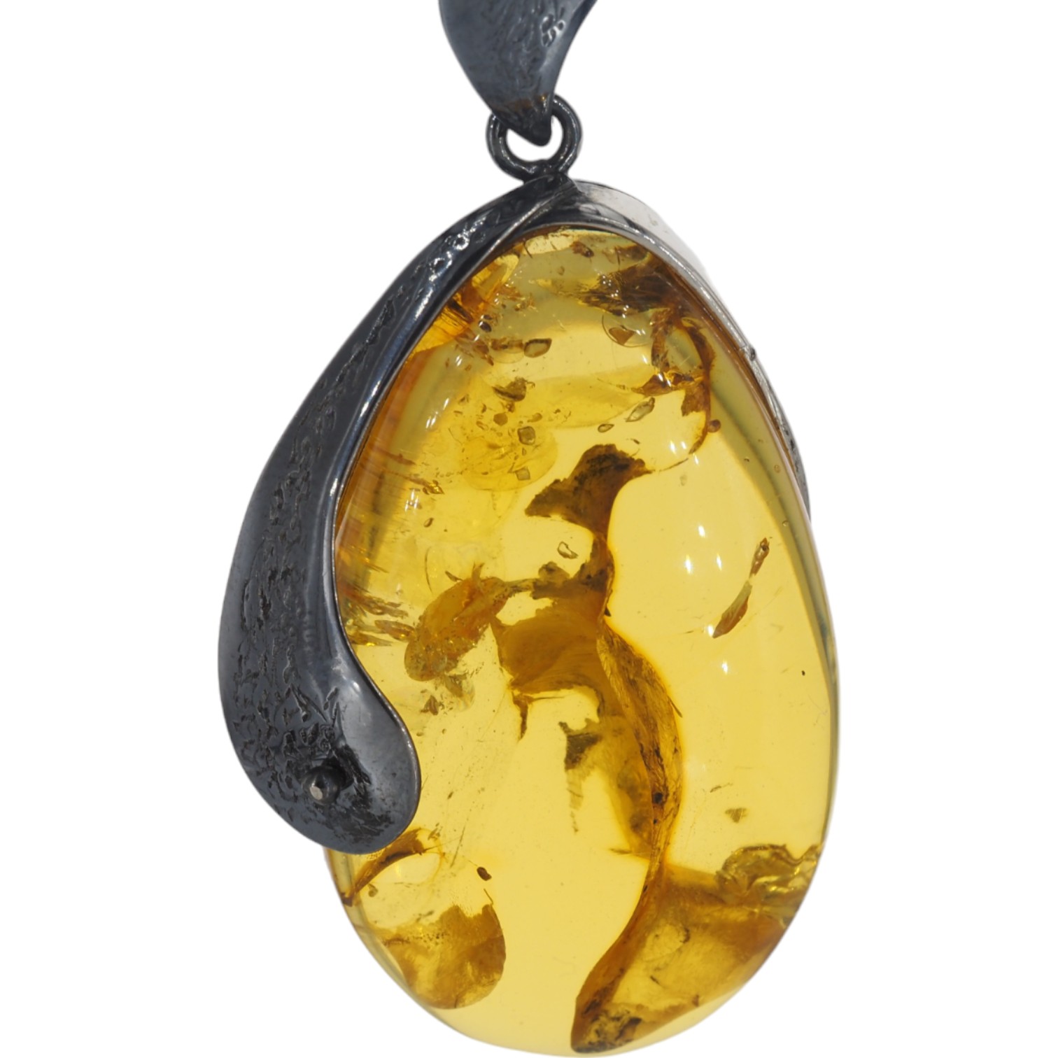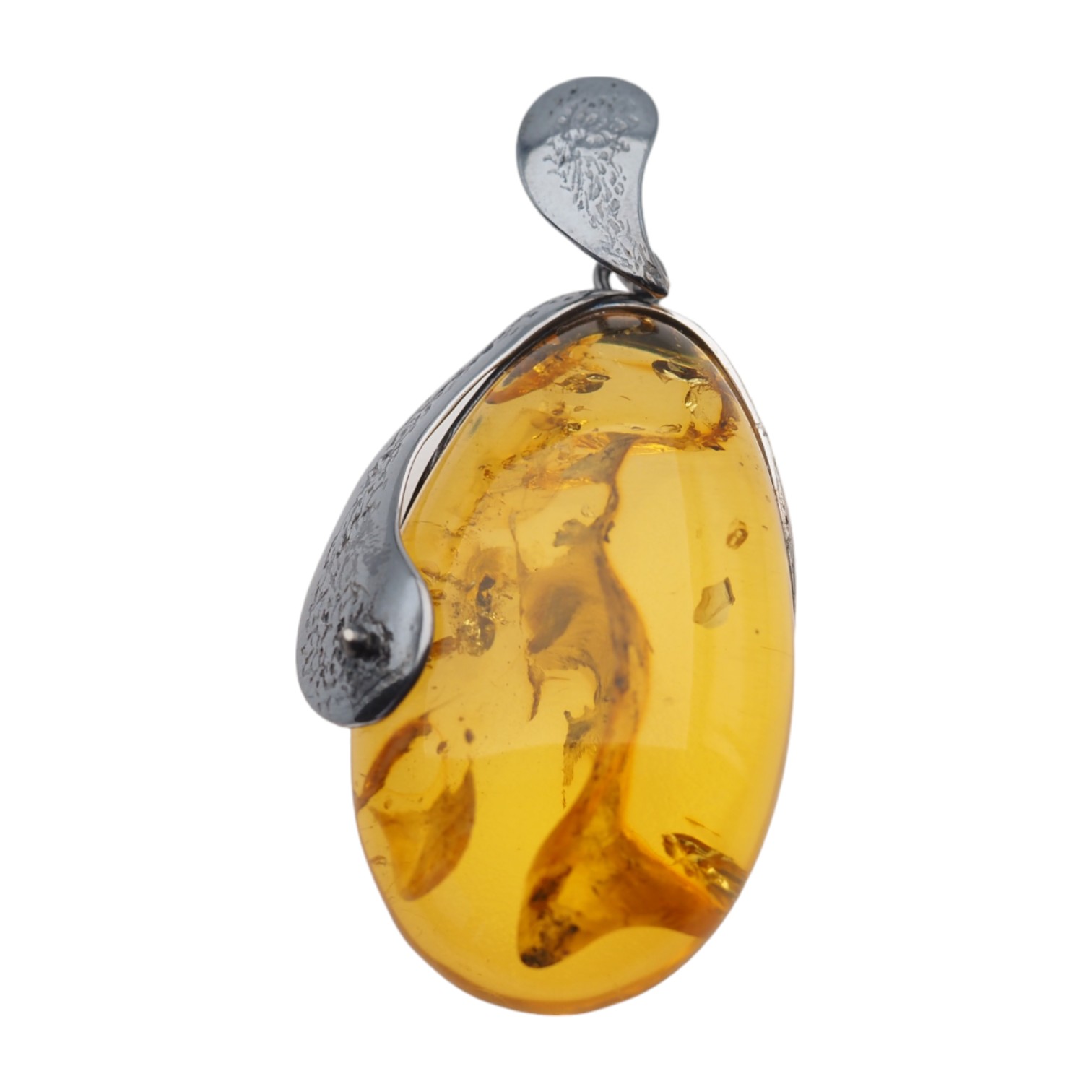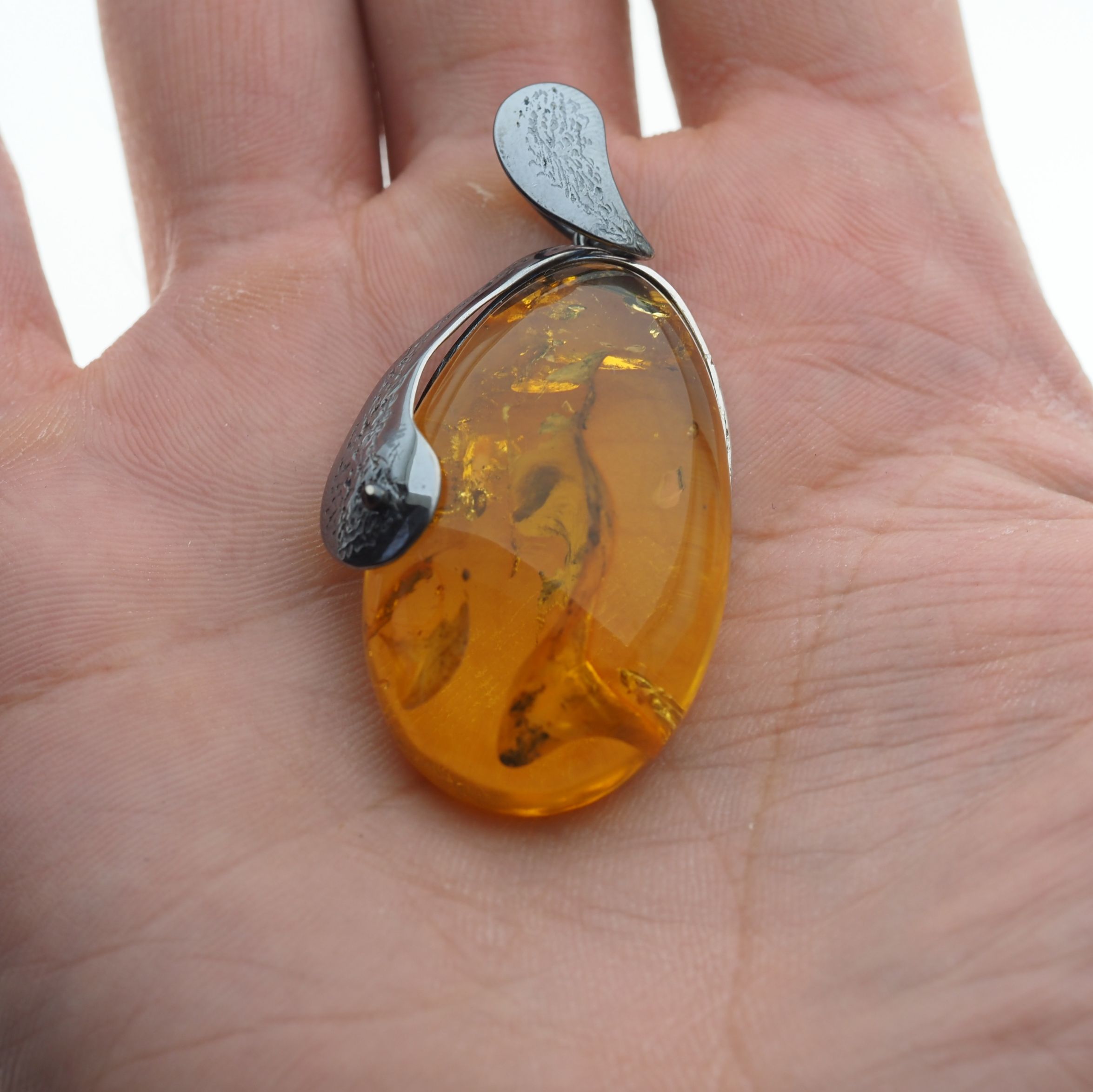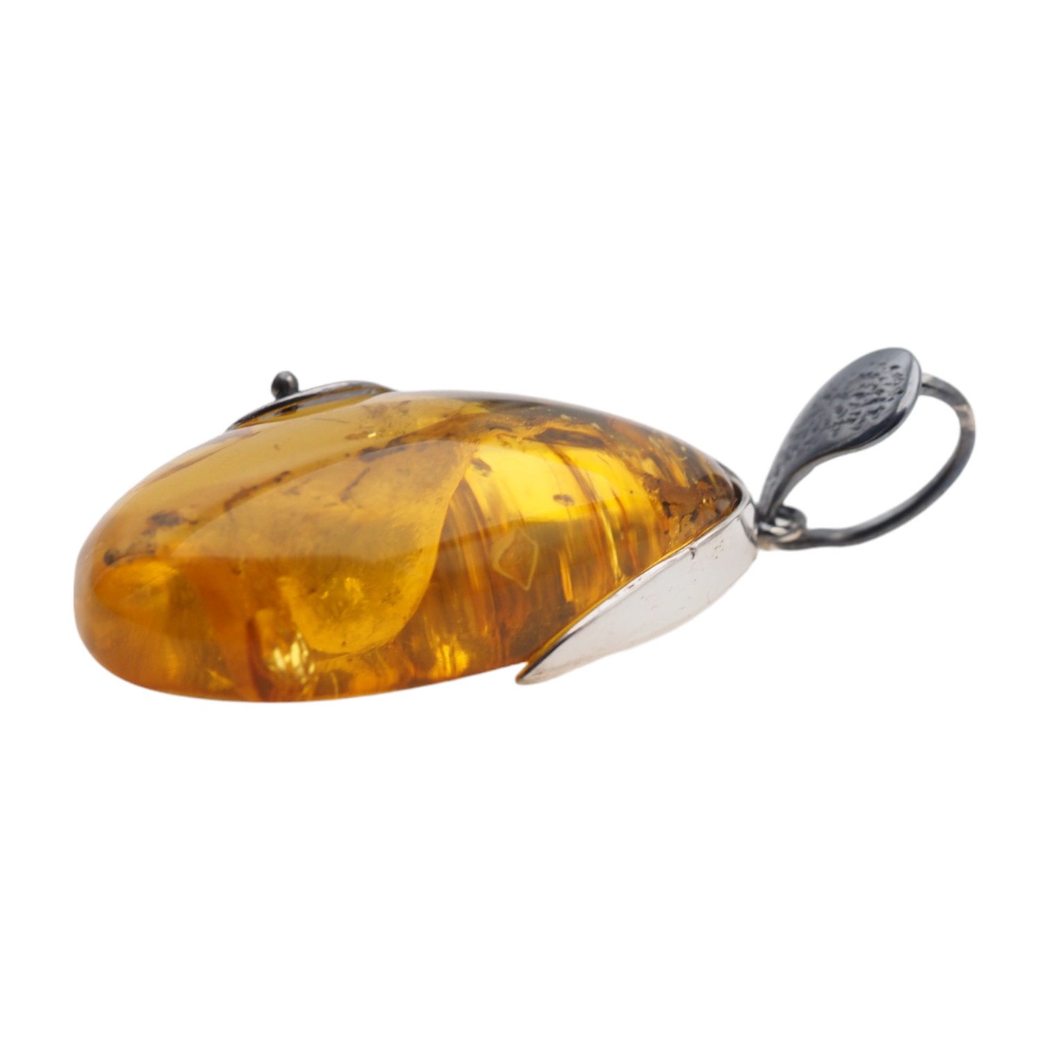 Zawieszka z bursztynem. Zawieszka ręcznie wykonana od podstaw w srebrze. Srebro młotkowane i polerowane, oksydowane próba 925.