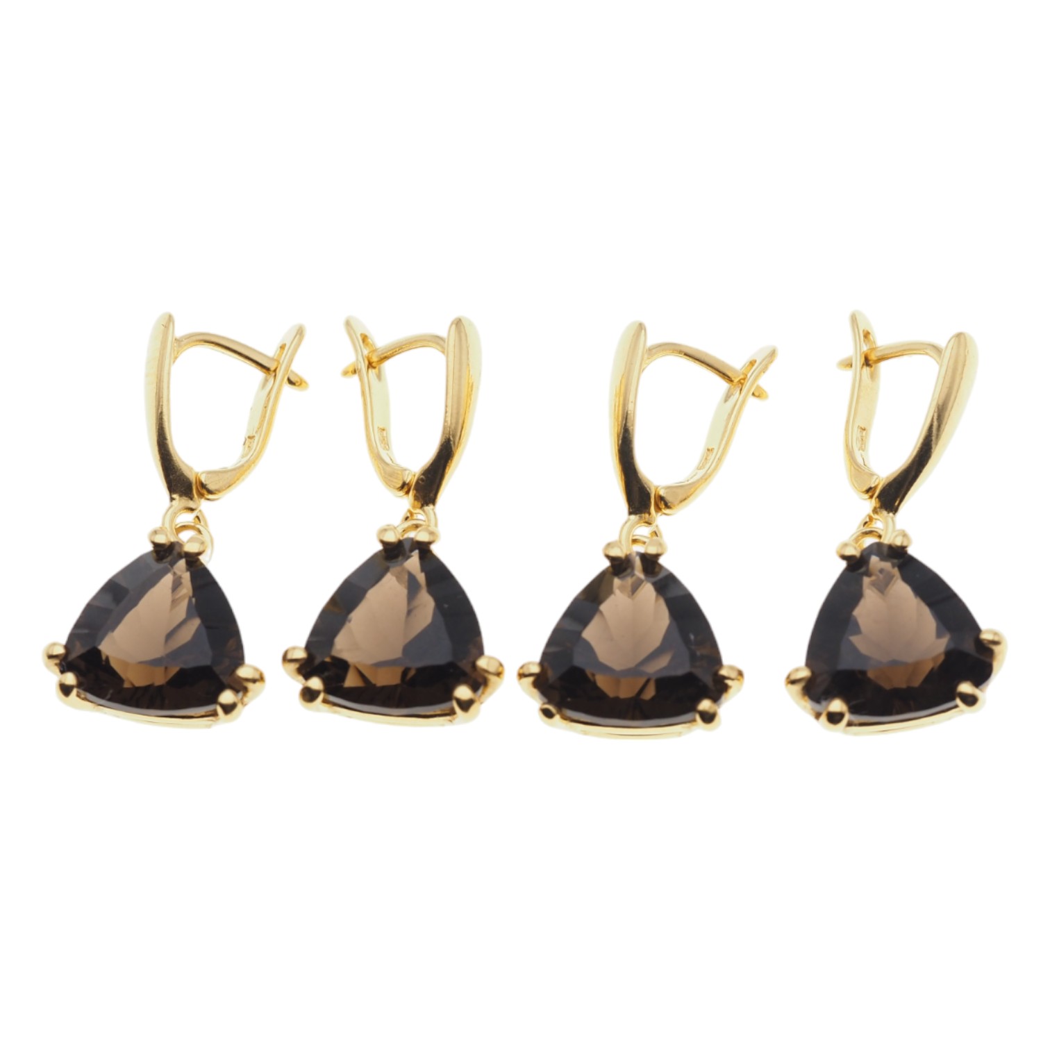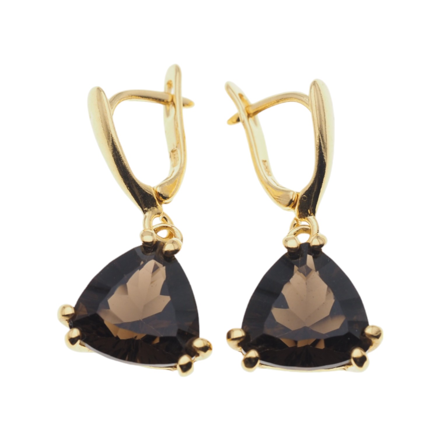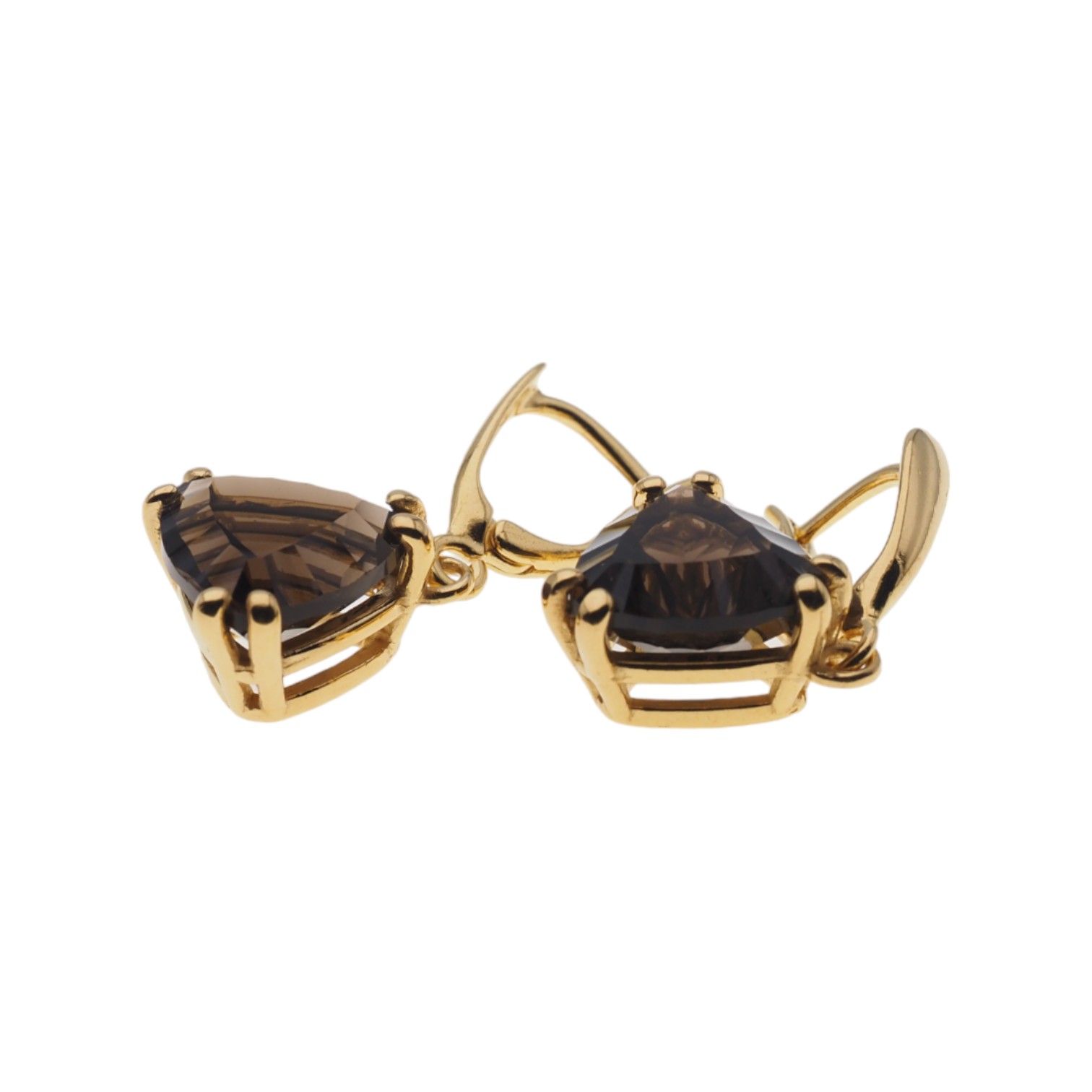 Naturalny Kwarc Dymny i i srebro złocone - kolczyki.
