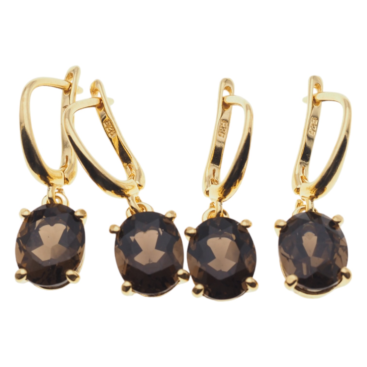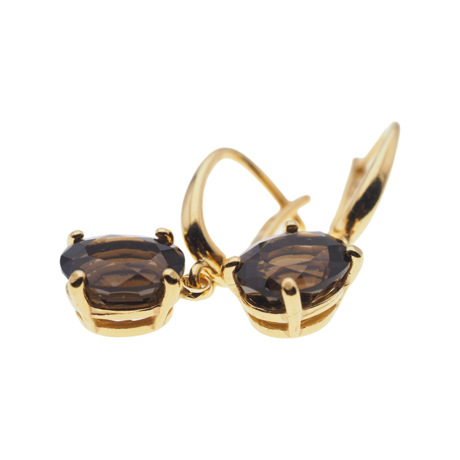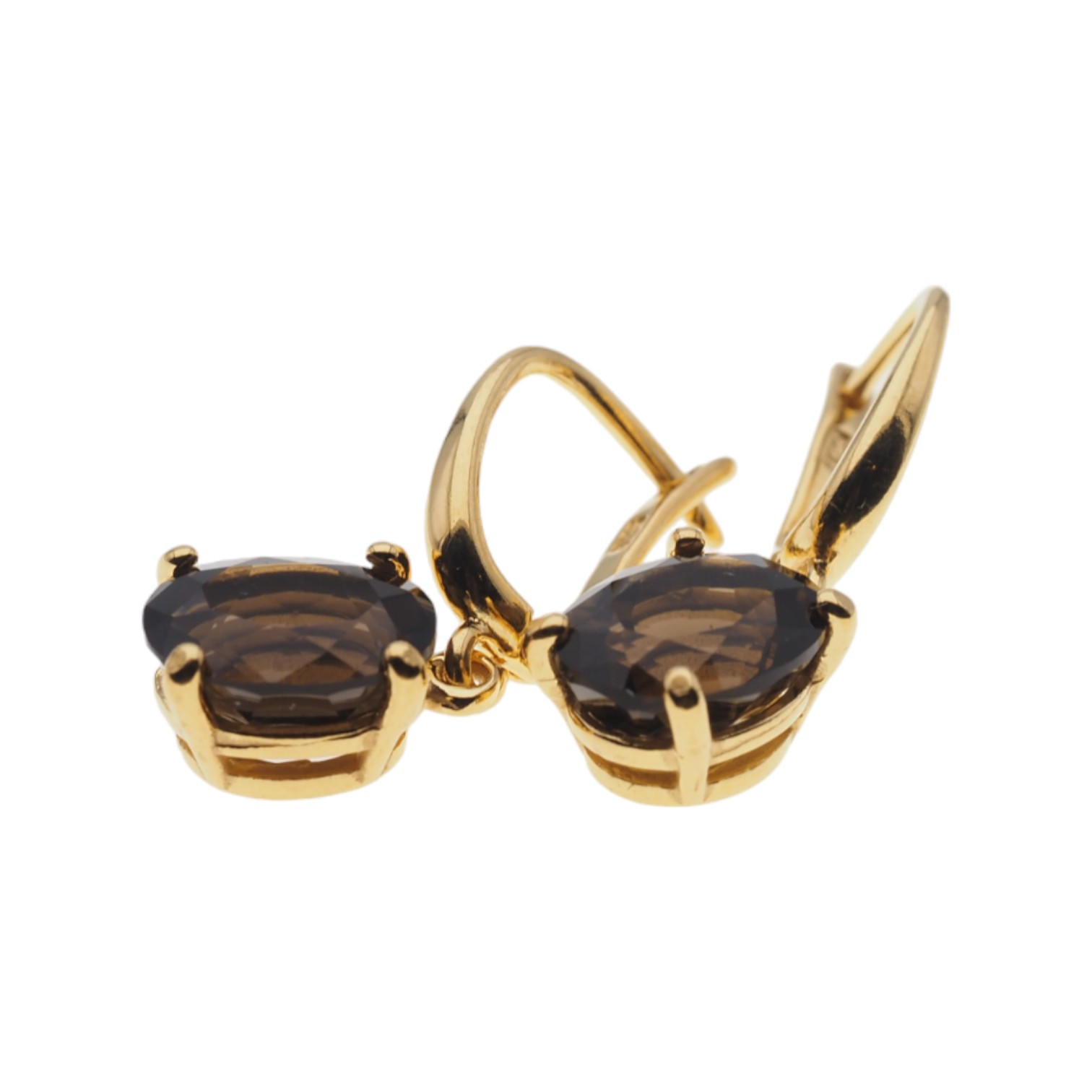 Naturalny Kwarc Dymny i i srebro złocone - kolczyki.