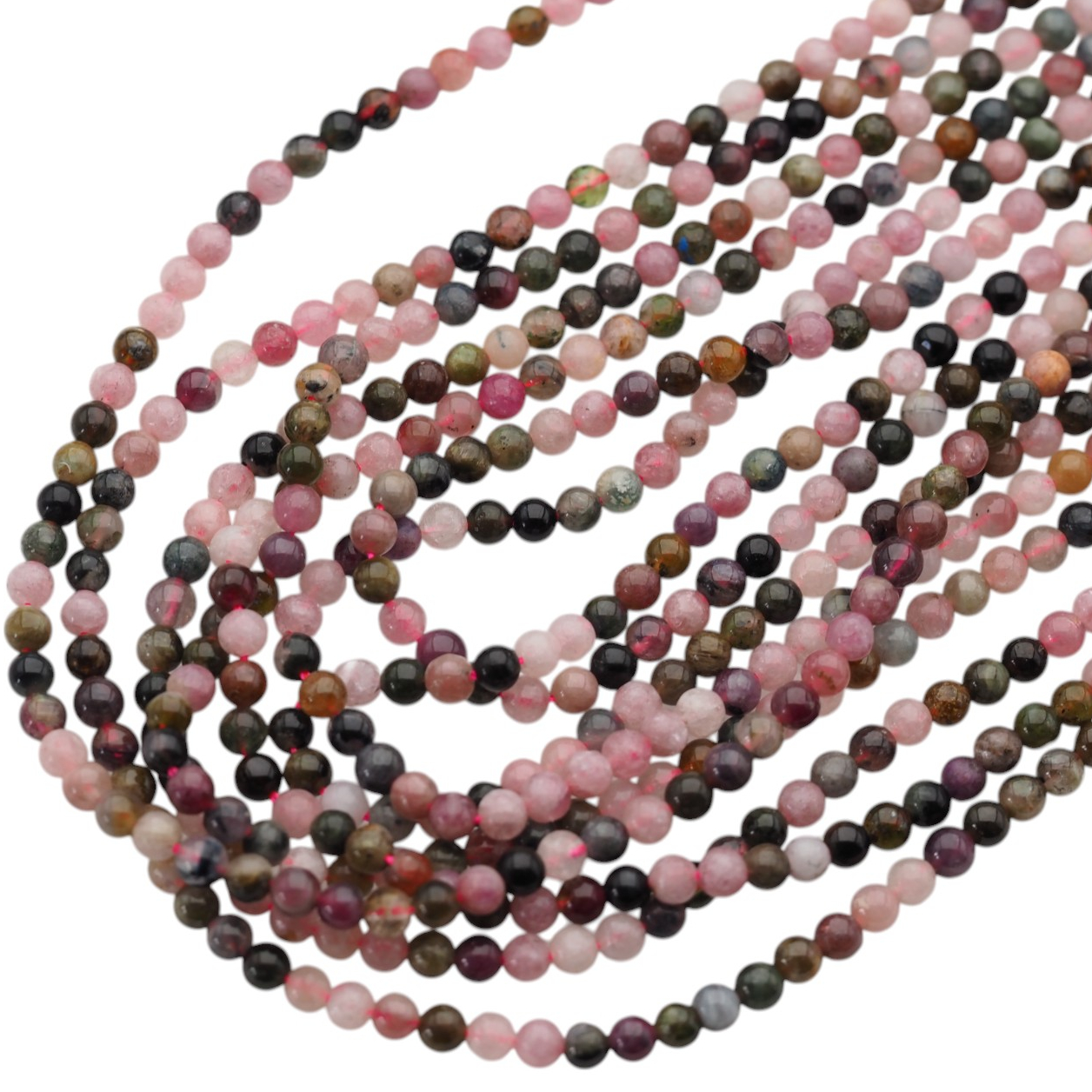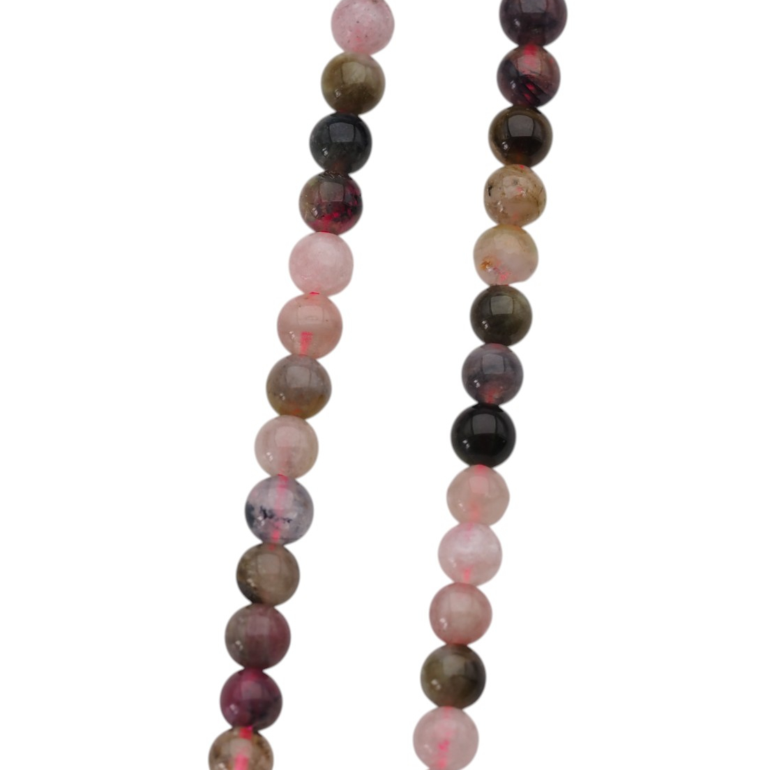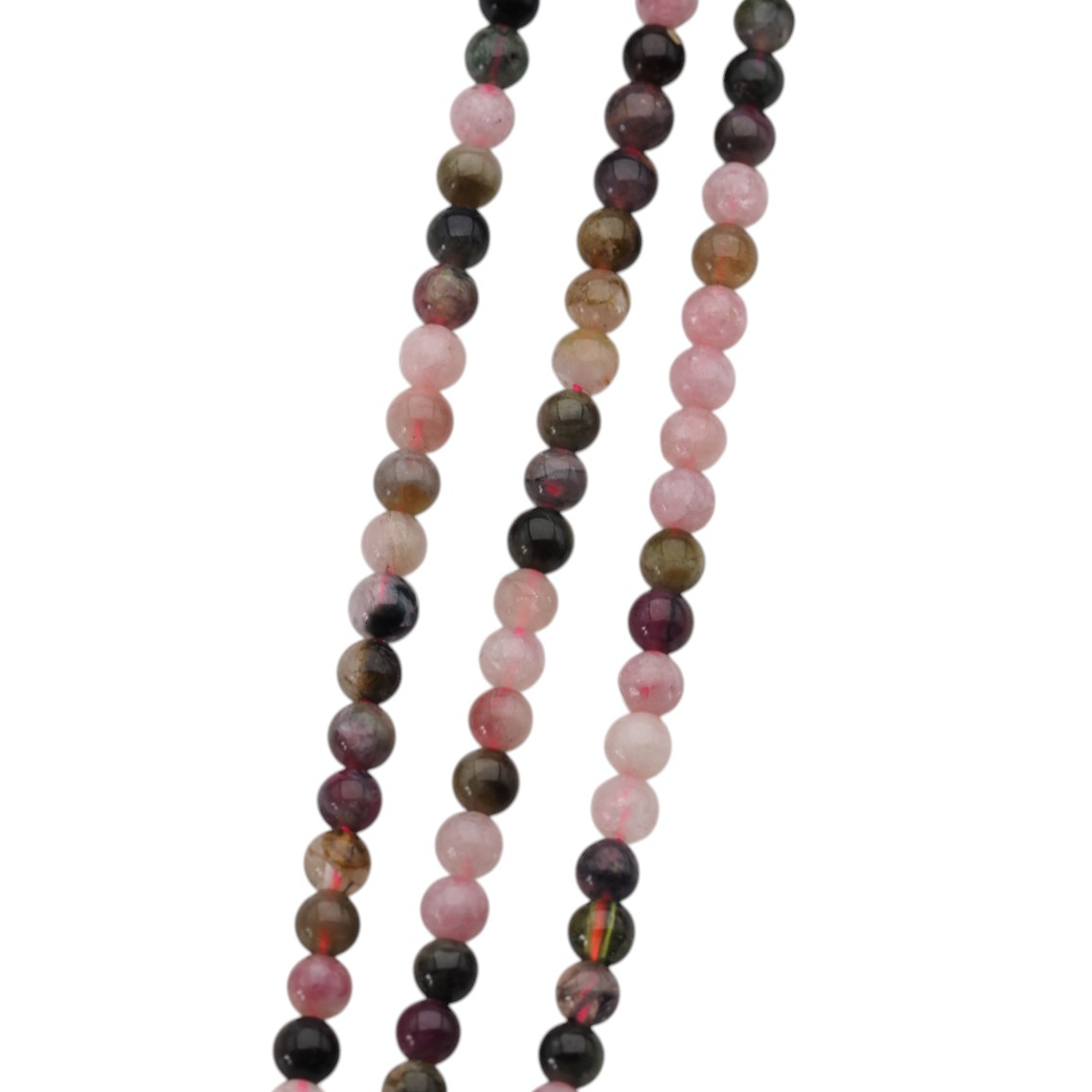 Naturalny turmalin kolorowy w formie drobnych kulek zachwyca wielobarwnością i subtelną grą odcieni w jednym sznurze. To kamień, który dobrze wygląda zarówno solo, jak i w zestawieniach z metalami jubilerskimi oraz innymi minerałami.