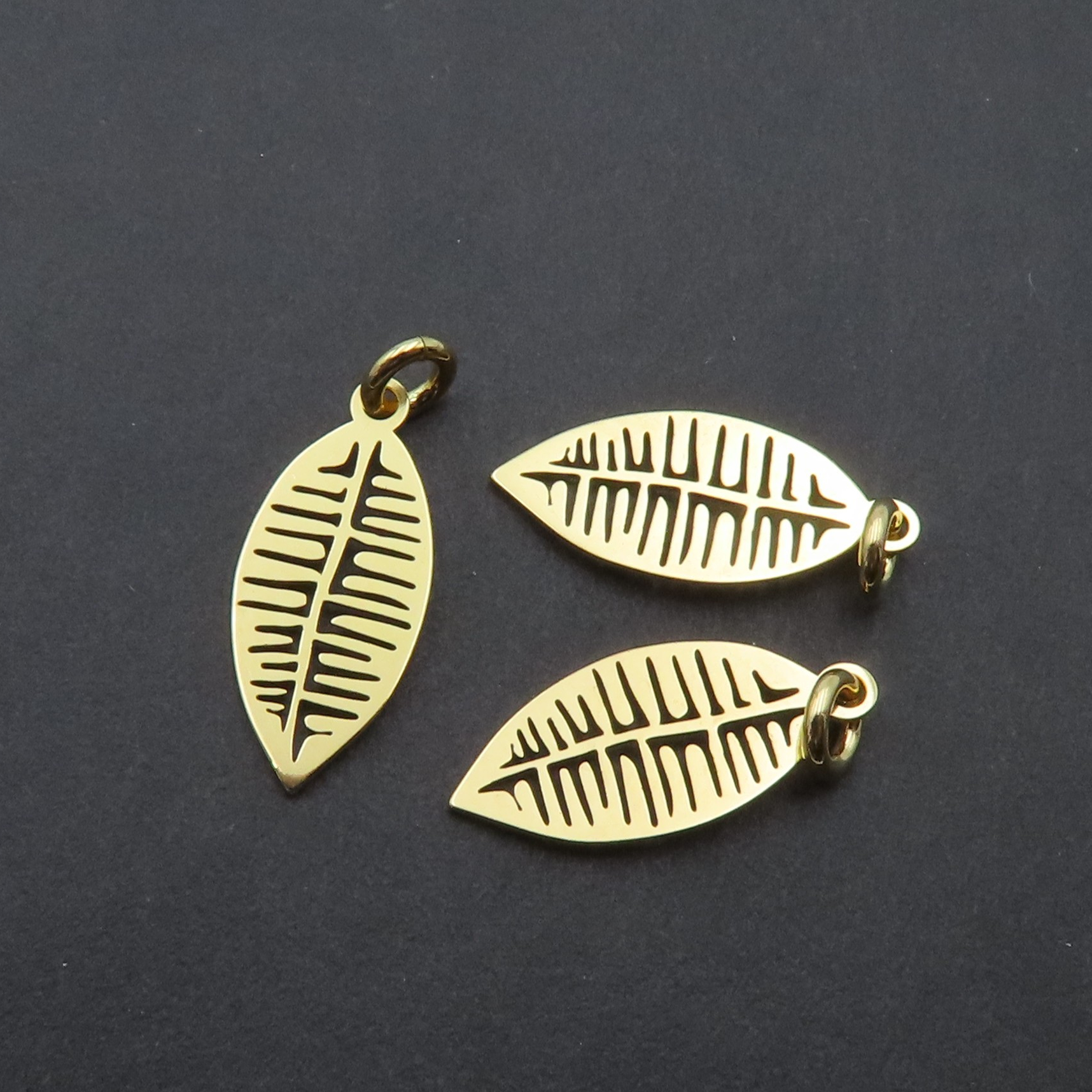 Element ozdobny, zawieszka liść. Srebro złocone 24K próba 925.