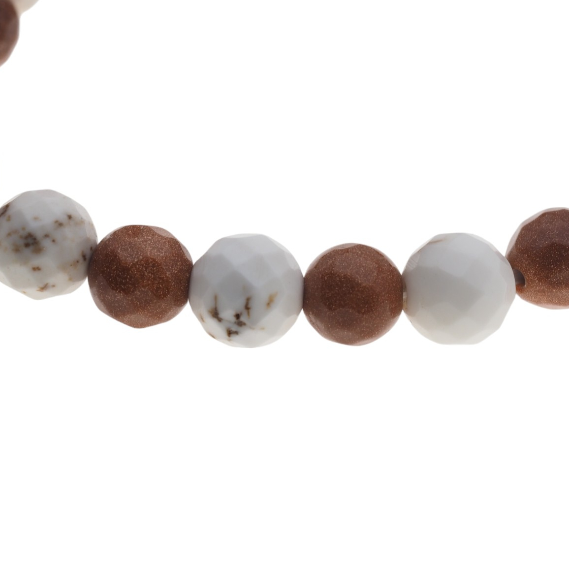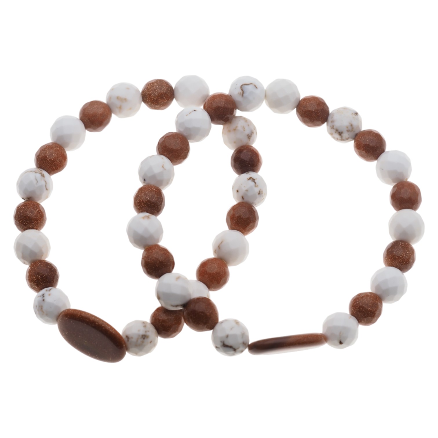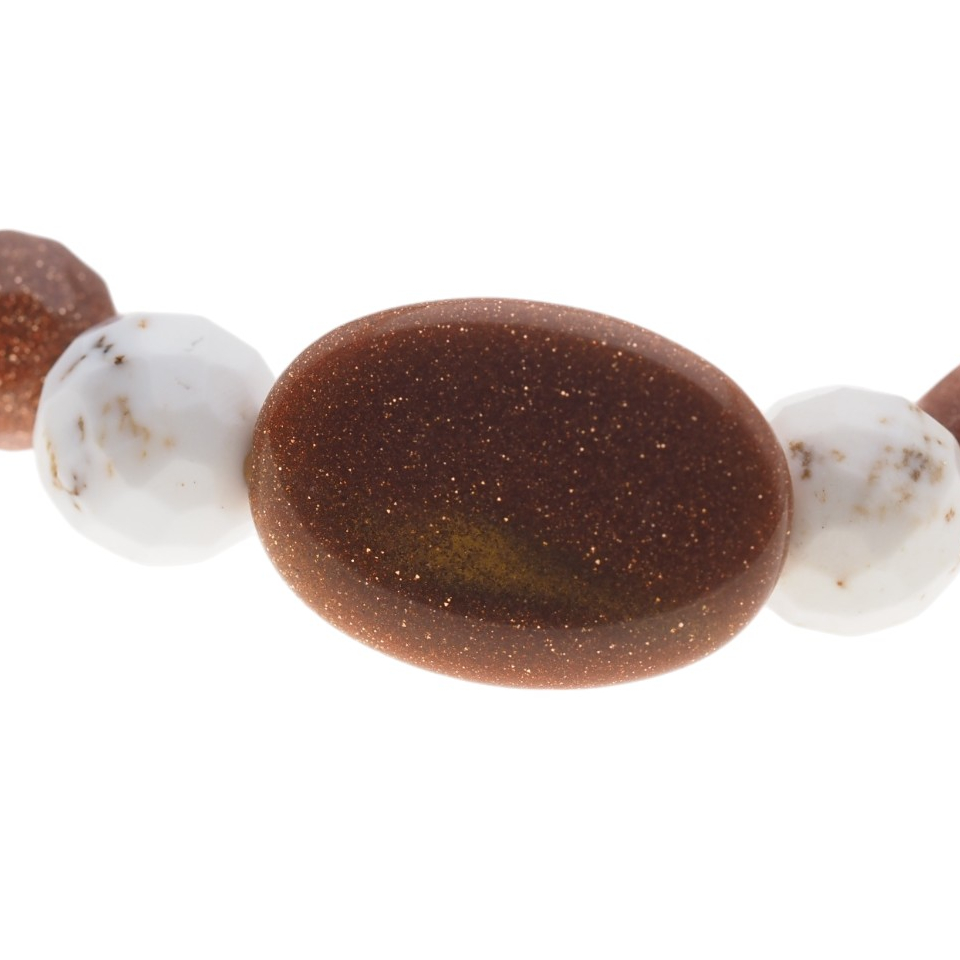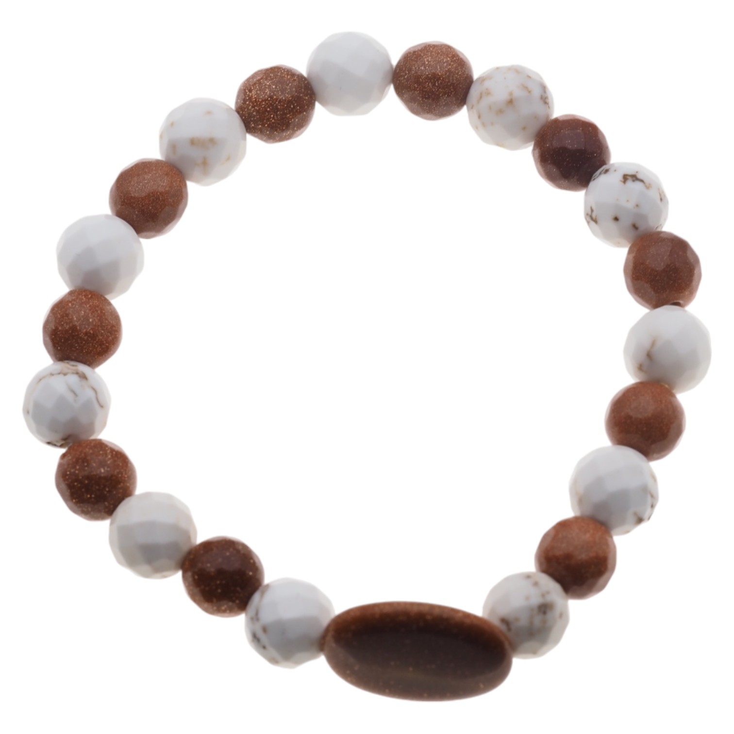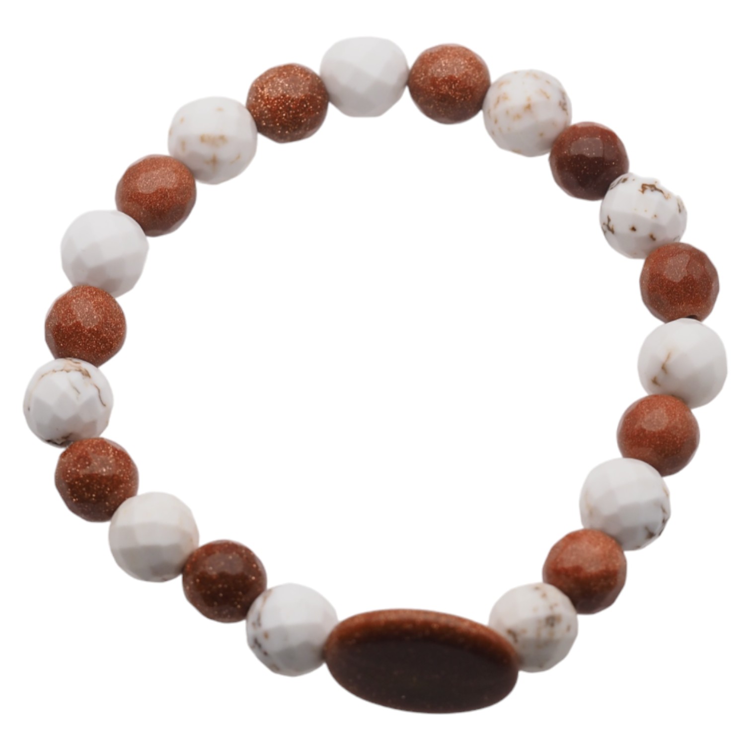 Howlit bywa wybierany ze względu na przypisywaną mu symbolikę wyciszenia i równowagi, a kompozycje w odcieniach pustynnego piasku często kojarzy się z ugruntowaniem oraz spokojem. Taka bransoleta może być noszona jako osobisty, symboliczny detal – blisko na co dzień.