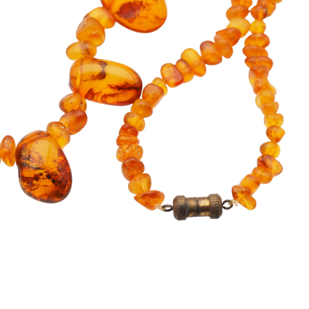 Korale zrobione ręcznie z polerowanym Bursztynem Koniakowym.
