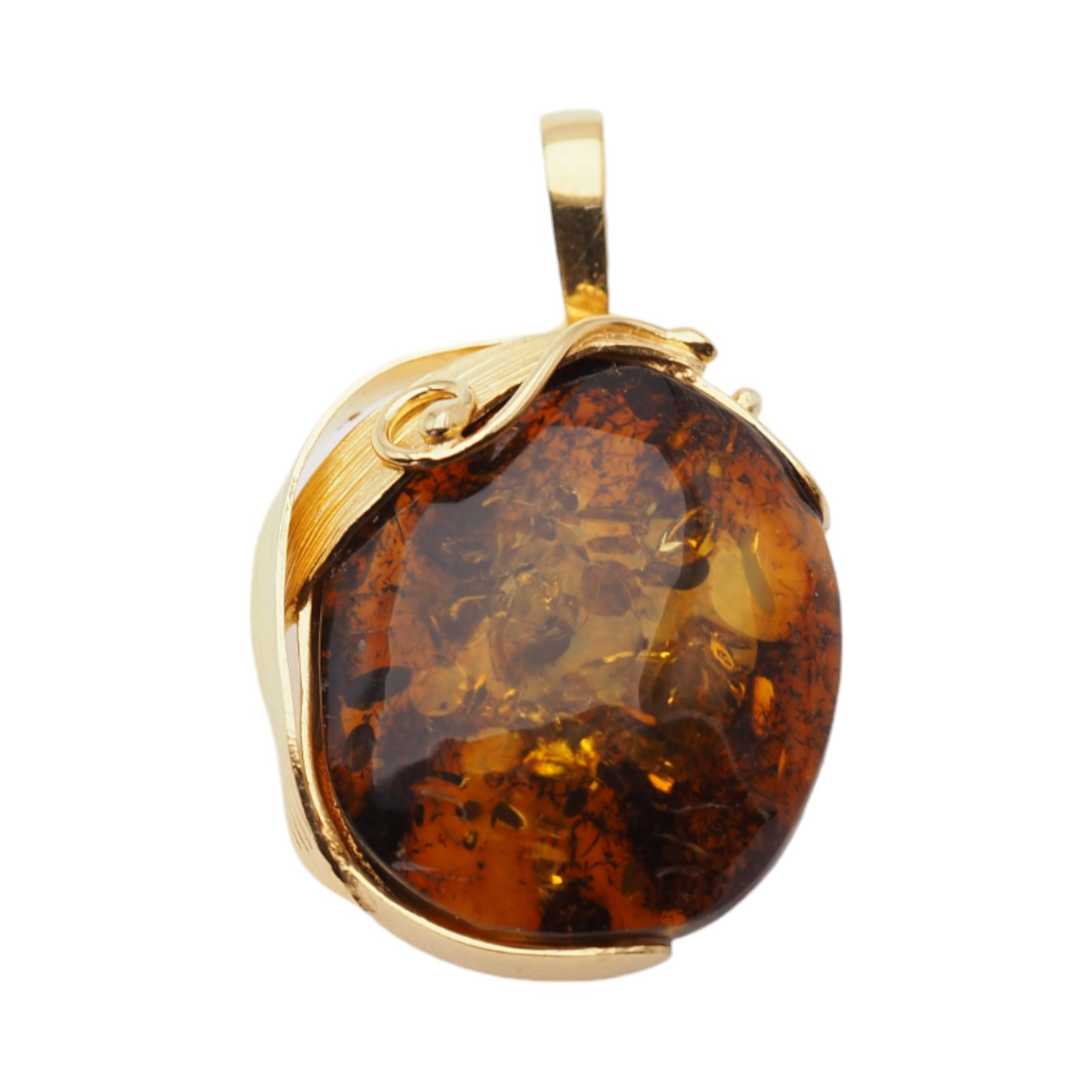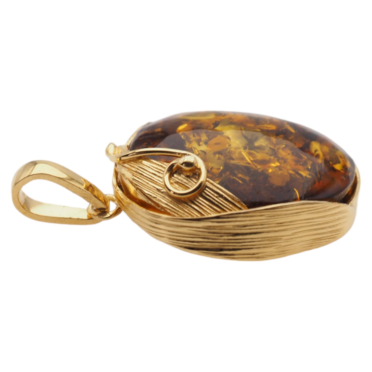 Koniakowy bursztyn z łuskami i srebro złocone - zawieszka z liśćmi