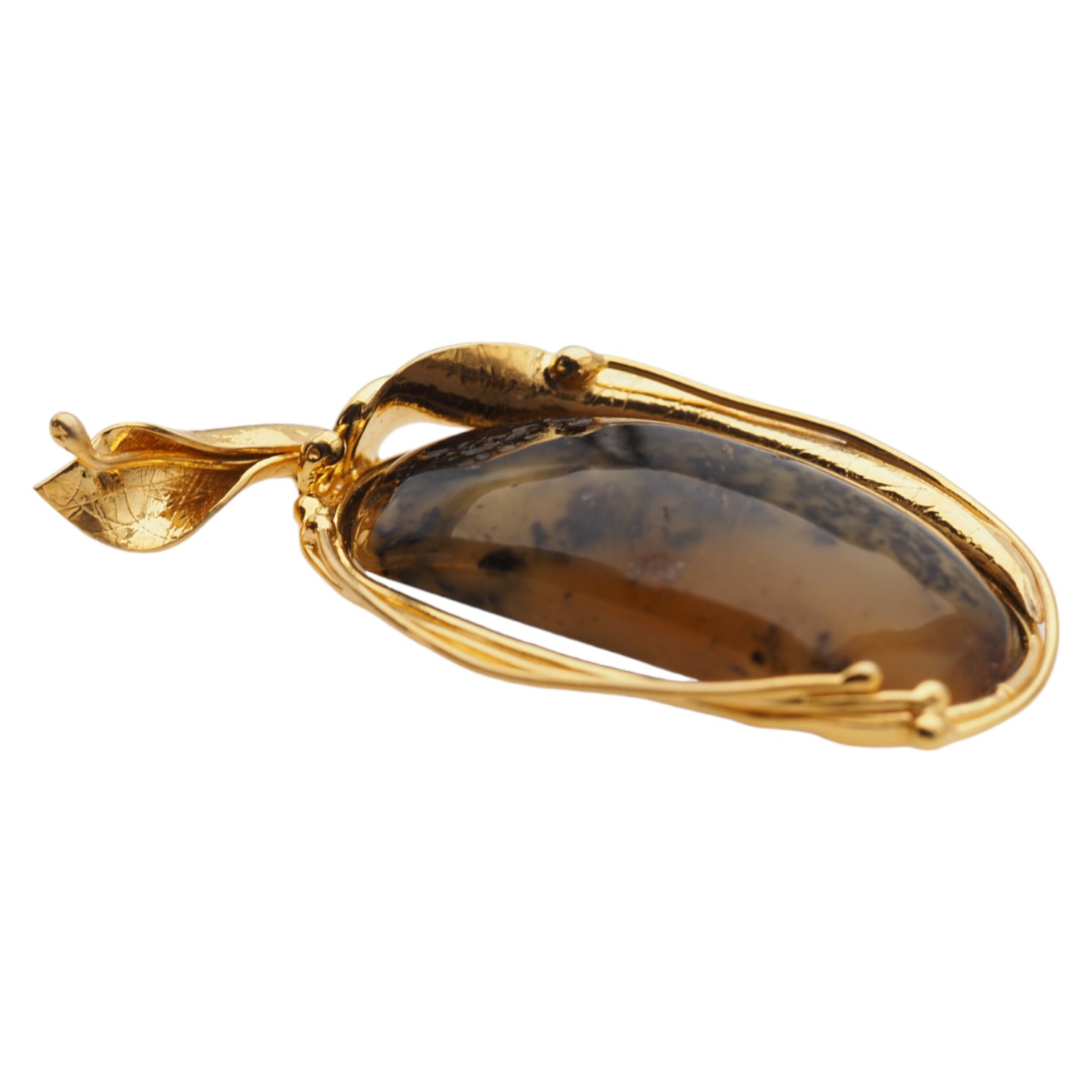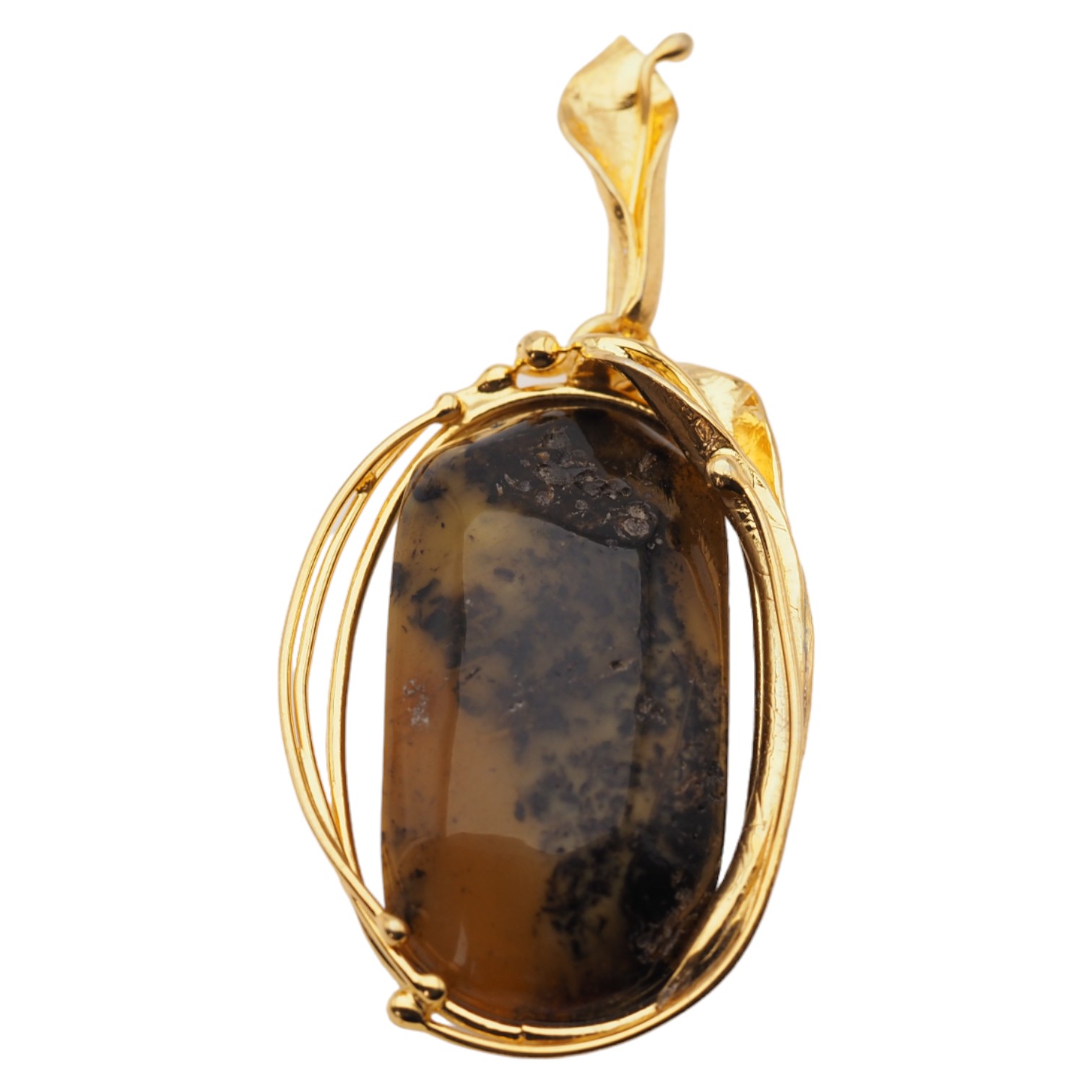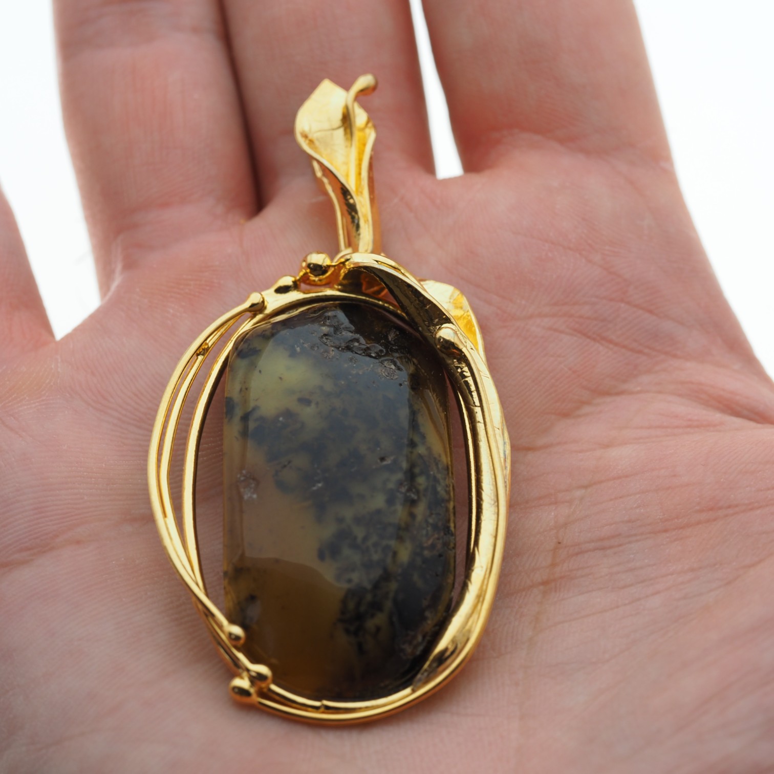 Kamień obrobiony prze artystę jubilera srebrem złoconym 925.