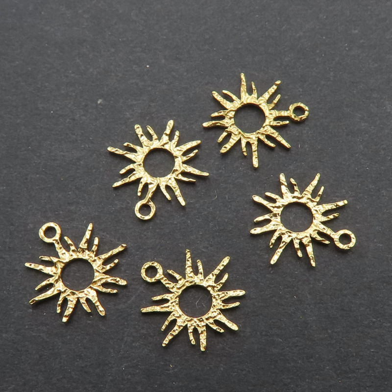 Element ozdobny, zawieszka słońce. Srebro złocone 24K młotkowane próba 925.