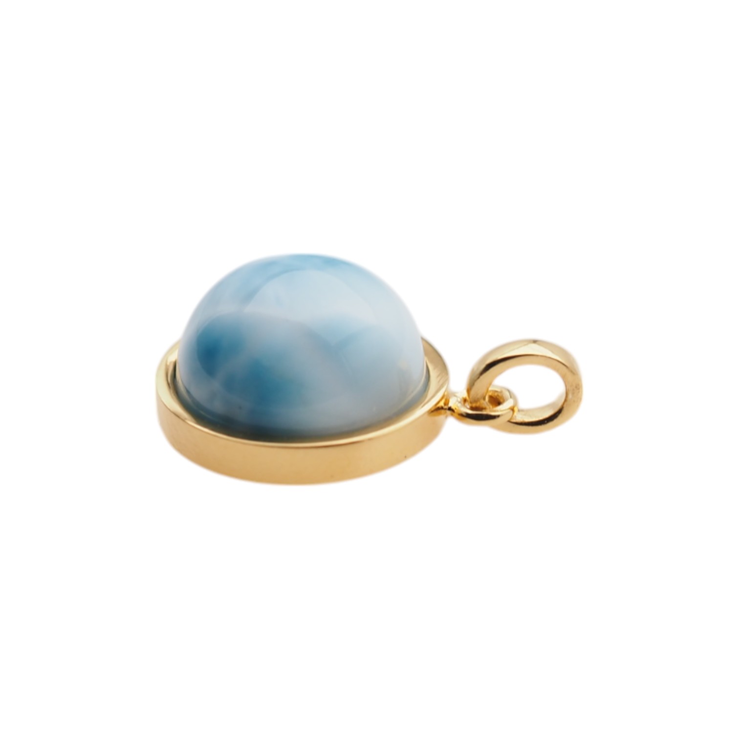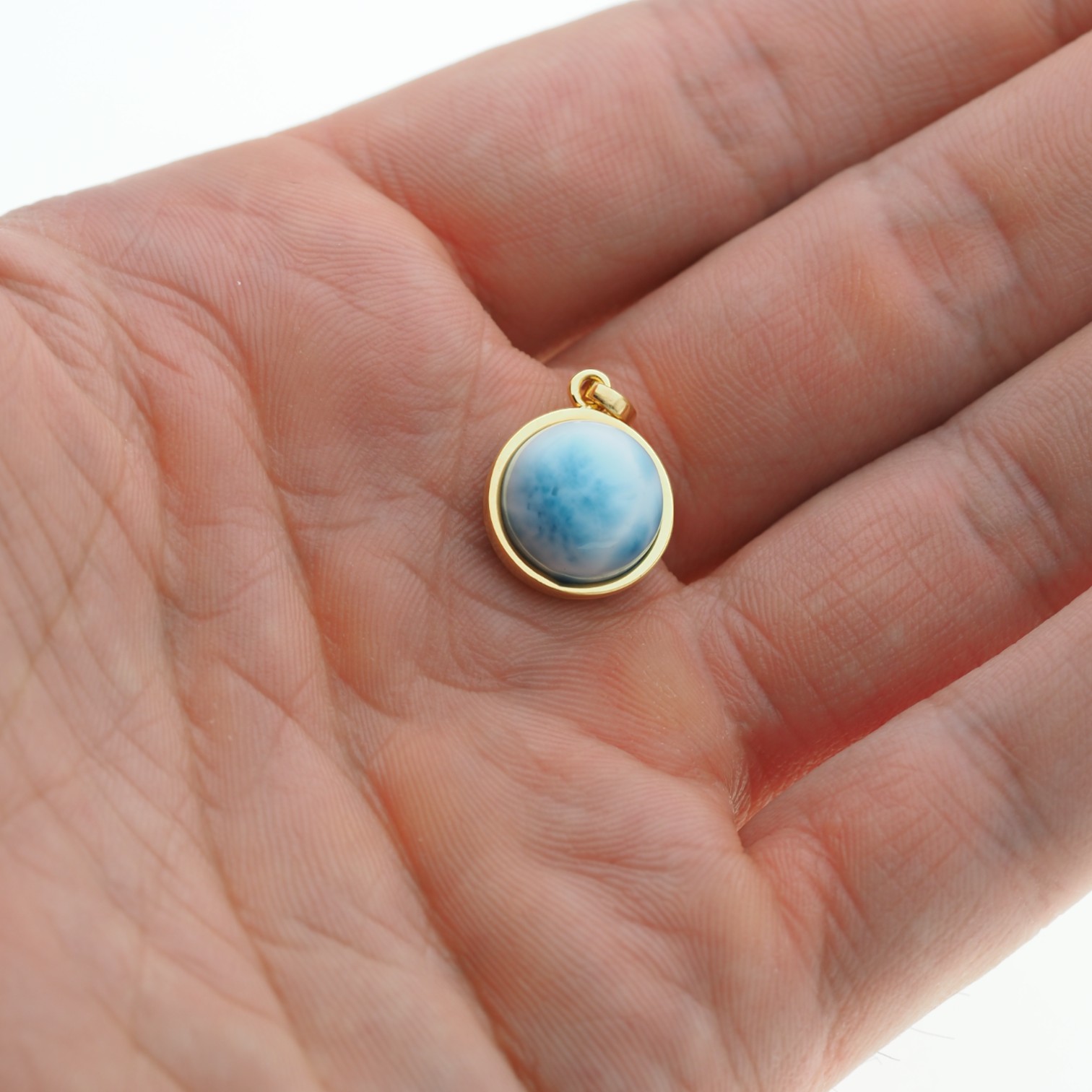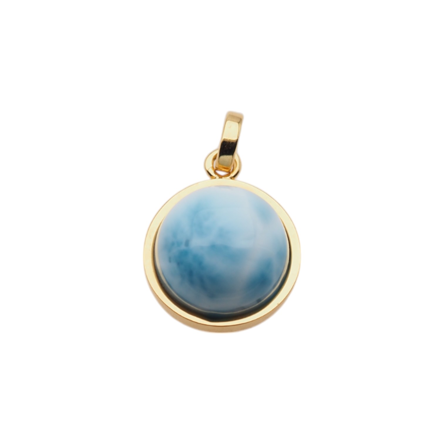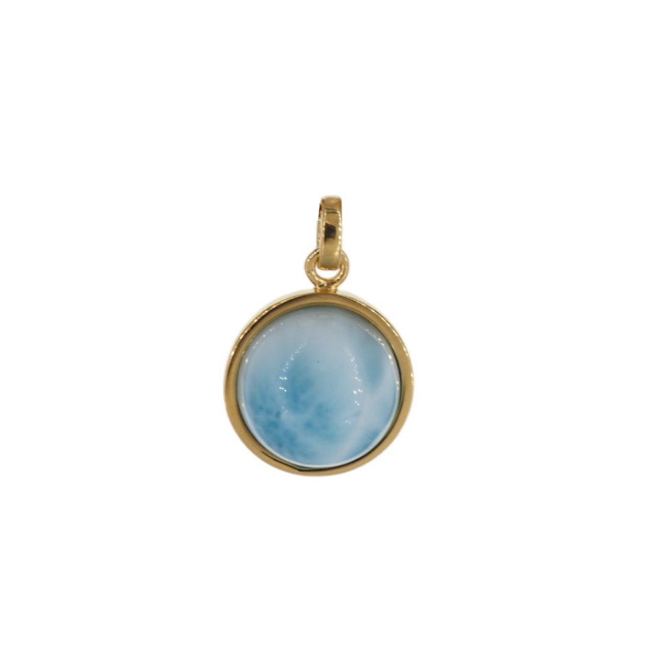 Wisiorek ręcznie wyprodukowany z Larimarem w kształcie okrągłym.