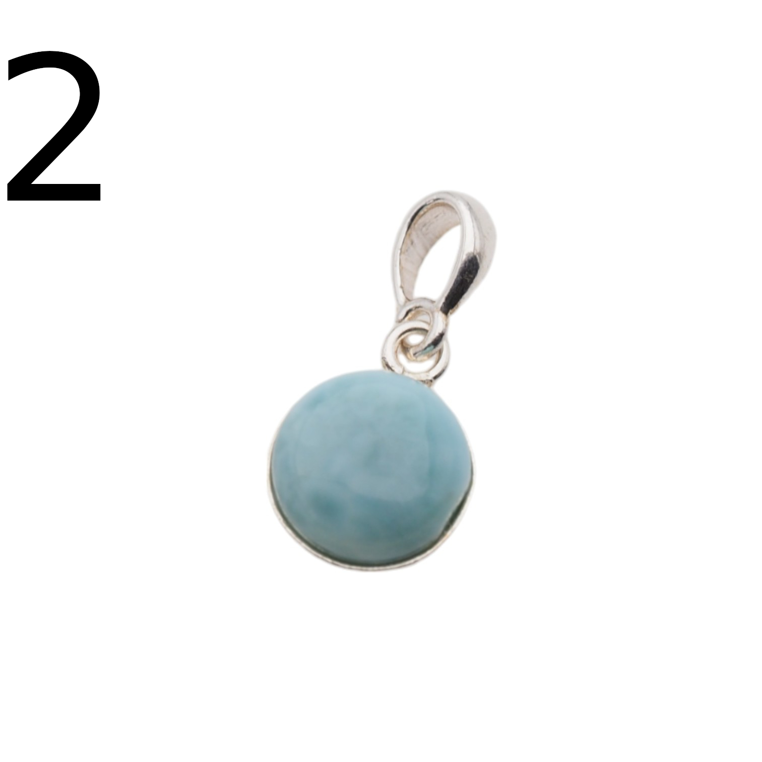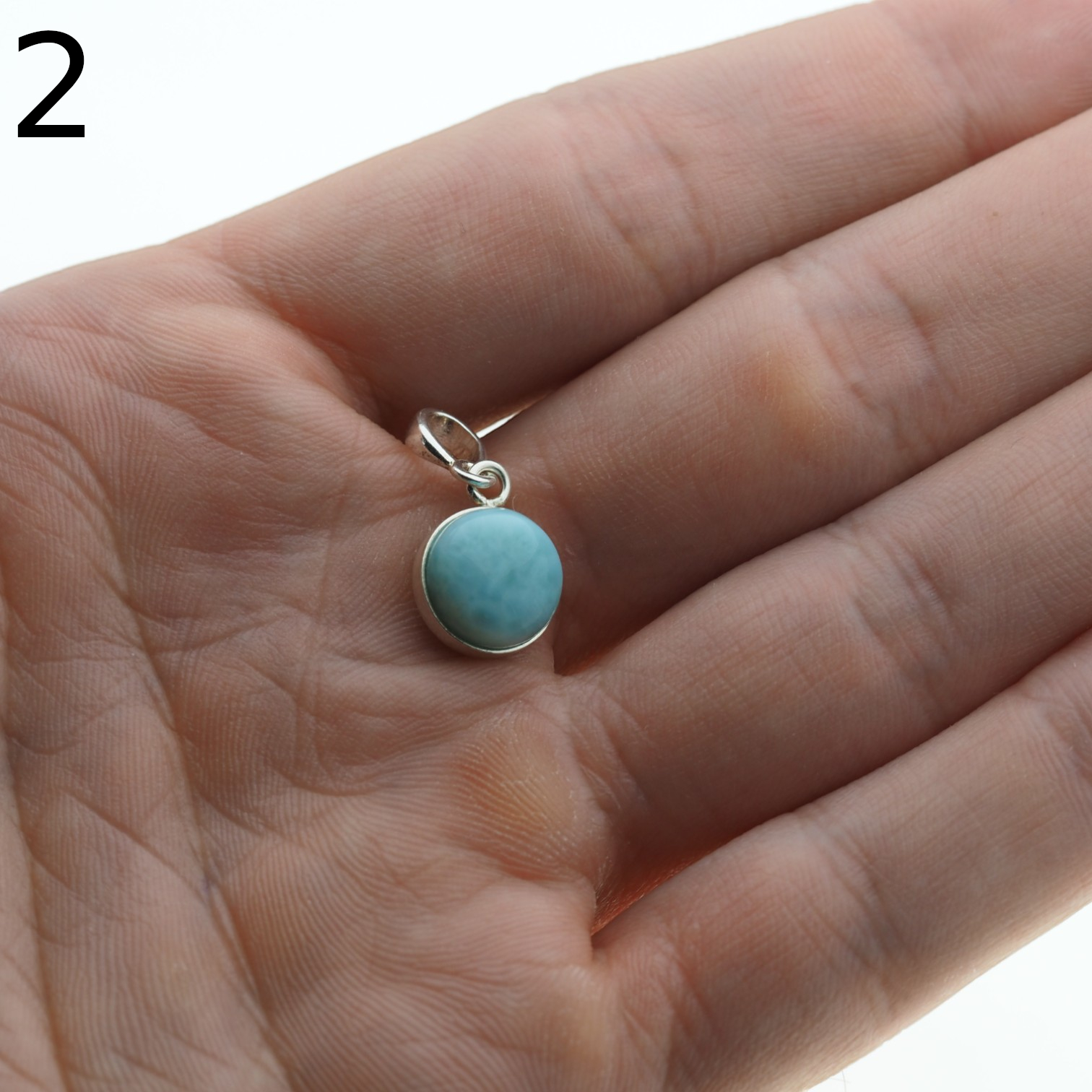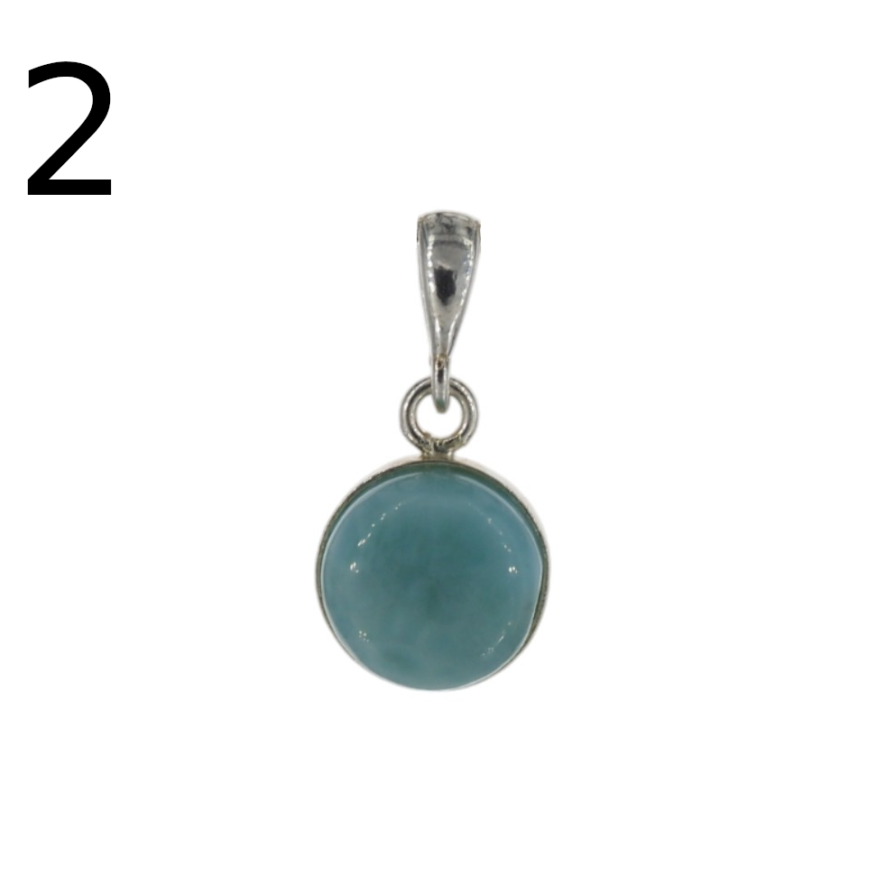 Wisiorek ręcznie wyprodukowany z Larimarem w kształcie okrągłym.